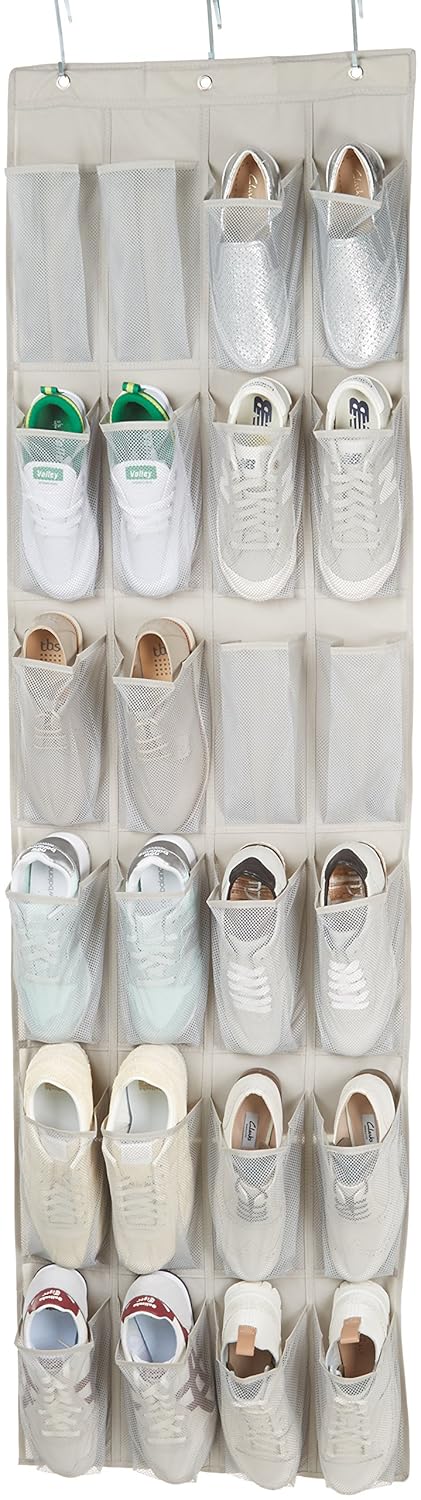 Photos: Amazon Basics 24 Medium Pocket Over-the-Door Hanging Shoe Organizer, Light Grey by Amazon Basics