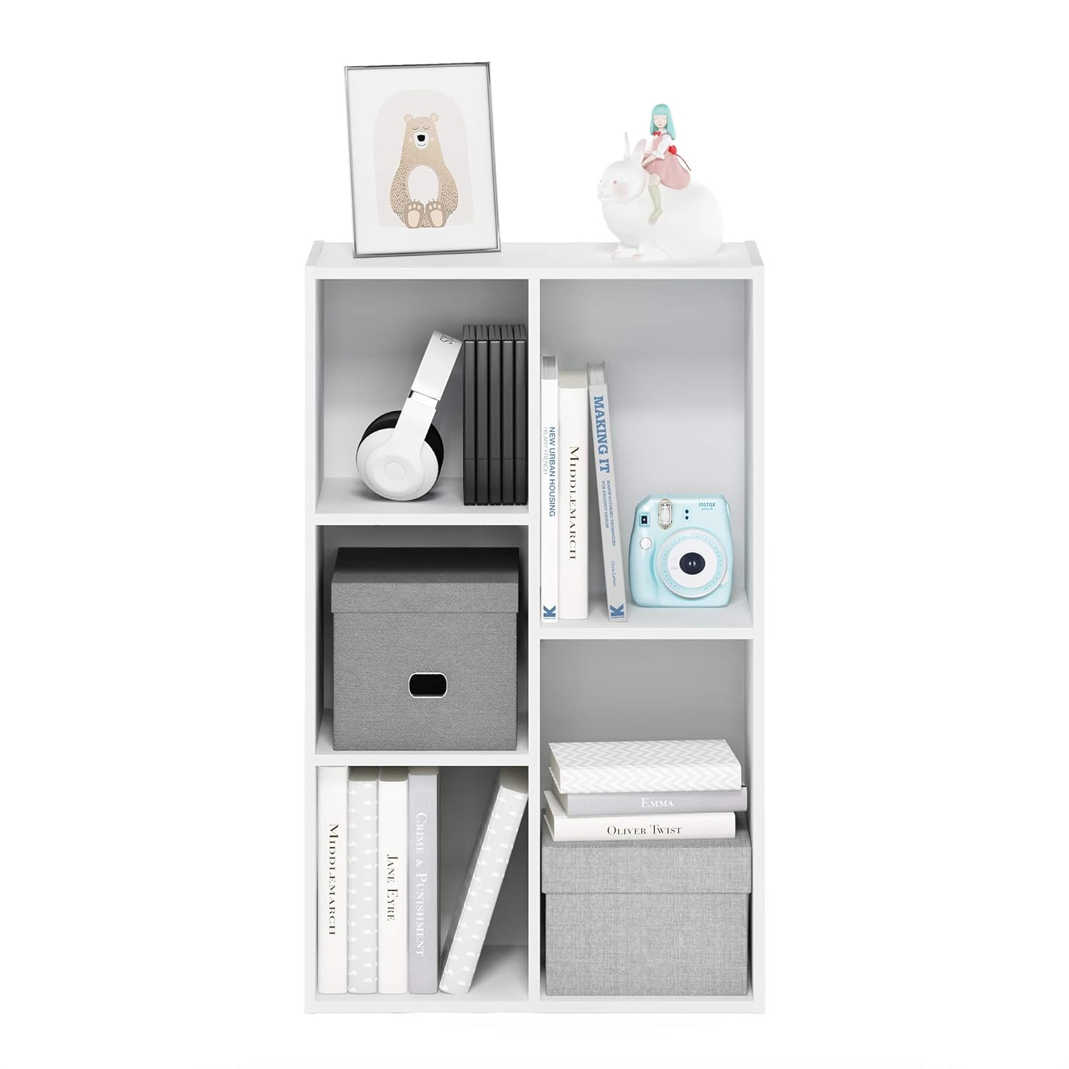 Photos: Furinno LUDER Book Shelf, 5-Cube Bookshelf, Reversible Bookcase, 9.4″ x 19.5″ x 31.5″, for Living Room, Bedroom, Home Office, White by Furinno
