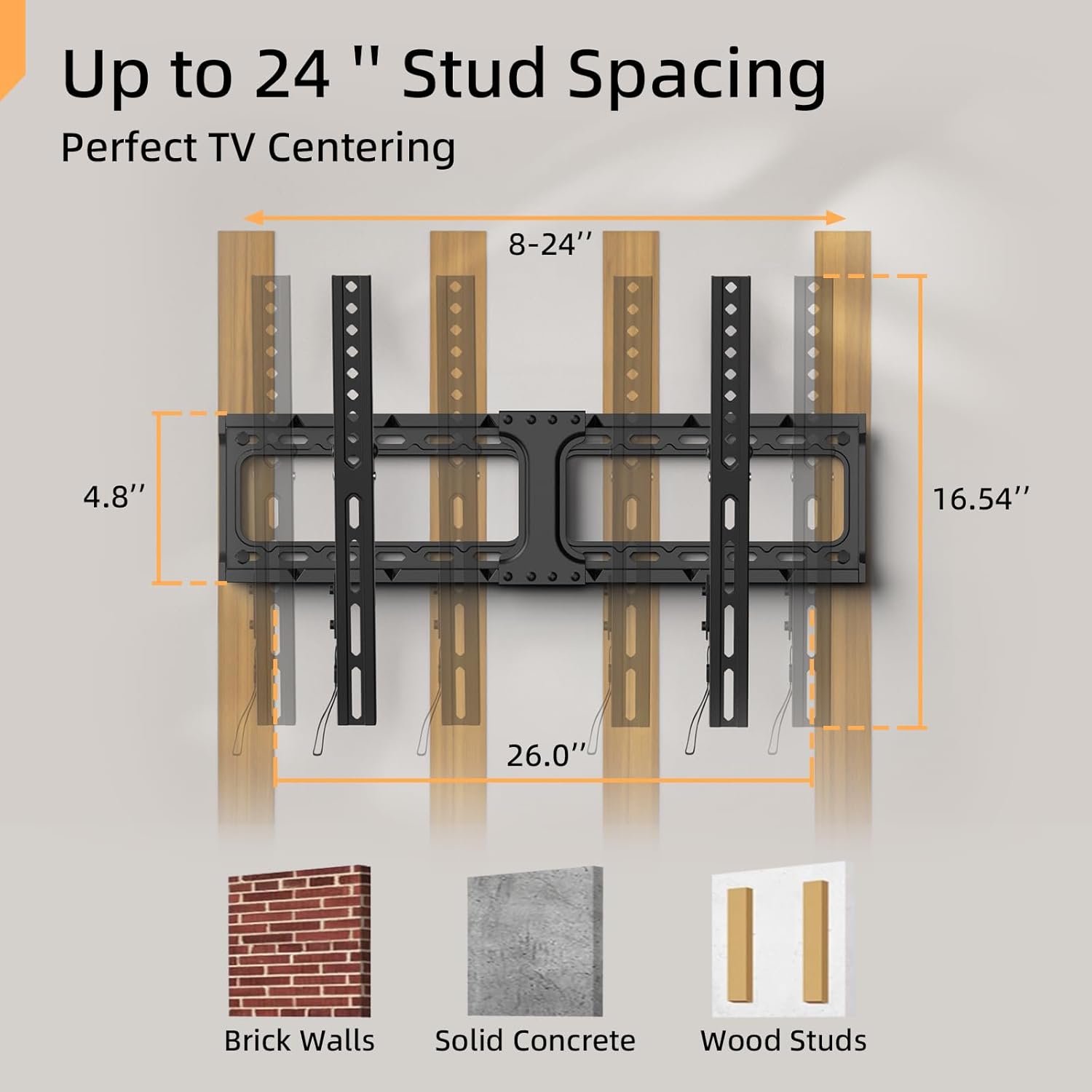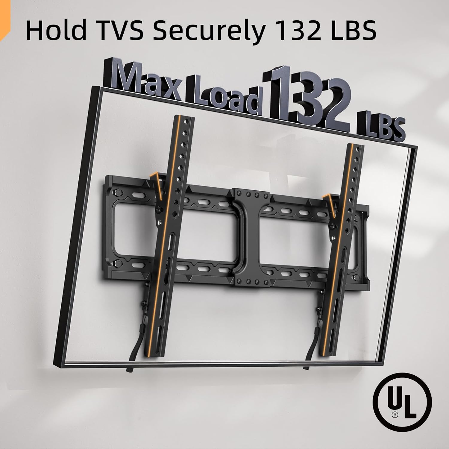 - [Sturdy and Safe] You can relax knowing your TV is securely mounted to the wall with this UL-certified TV wall mount, which holds up to 132 lbs without a hitch. Its solid design keeps your TV steady, no wobbling or slipping here! Plus, weโve got you covered with 10 years of support for this product.