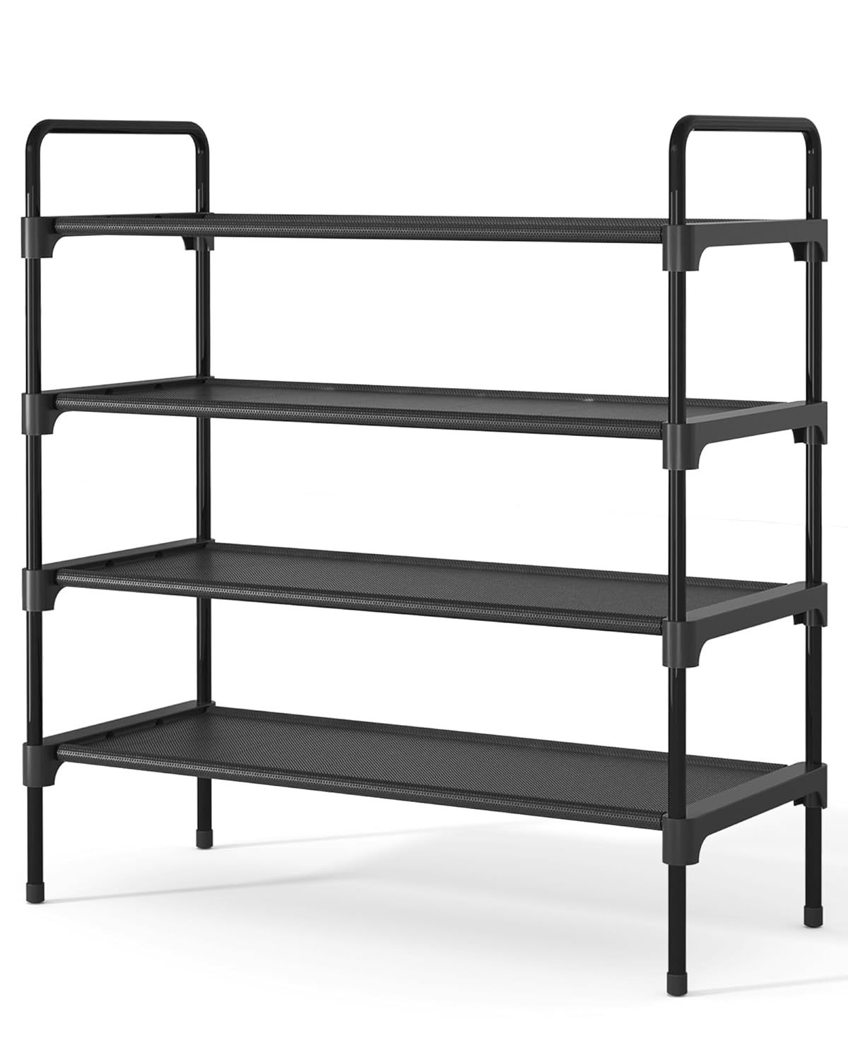I was pleasantly surprised by how sturdy this shoe rack is. I’ve got everything from heavy boots to lightweight sneakers on it, and there’s no sagging or wobbling. It holds more pairs than I expected, and the tiers have a good amount of space between them, so even taller shoes fit easily.