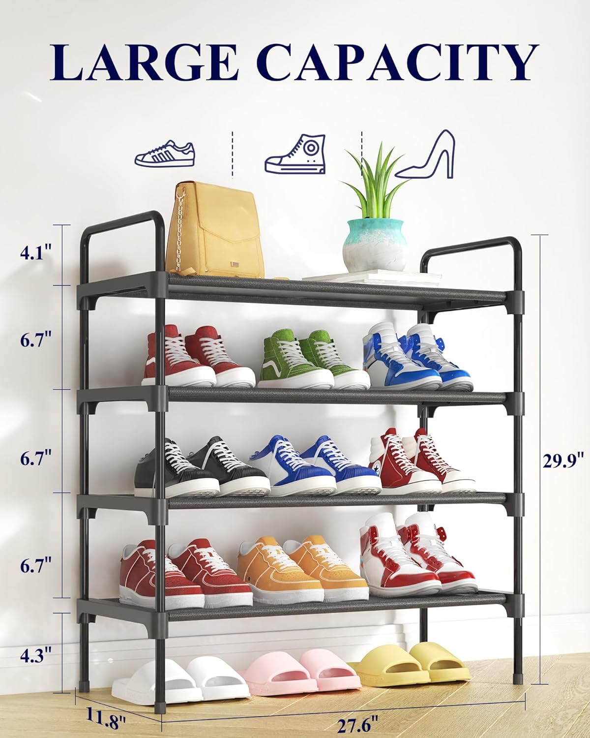 About Kitsure Shoe Rack for Closet, Sturdy Shoe Storage for Entryway, Space-Saving Shoe Rack Small and Shoe Shelf, 27.6″ Wide, Black