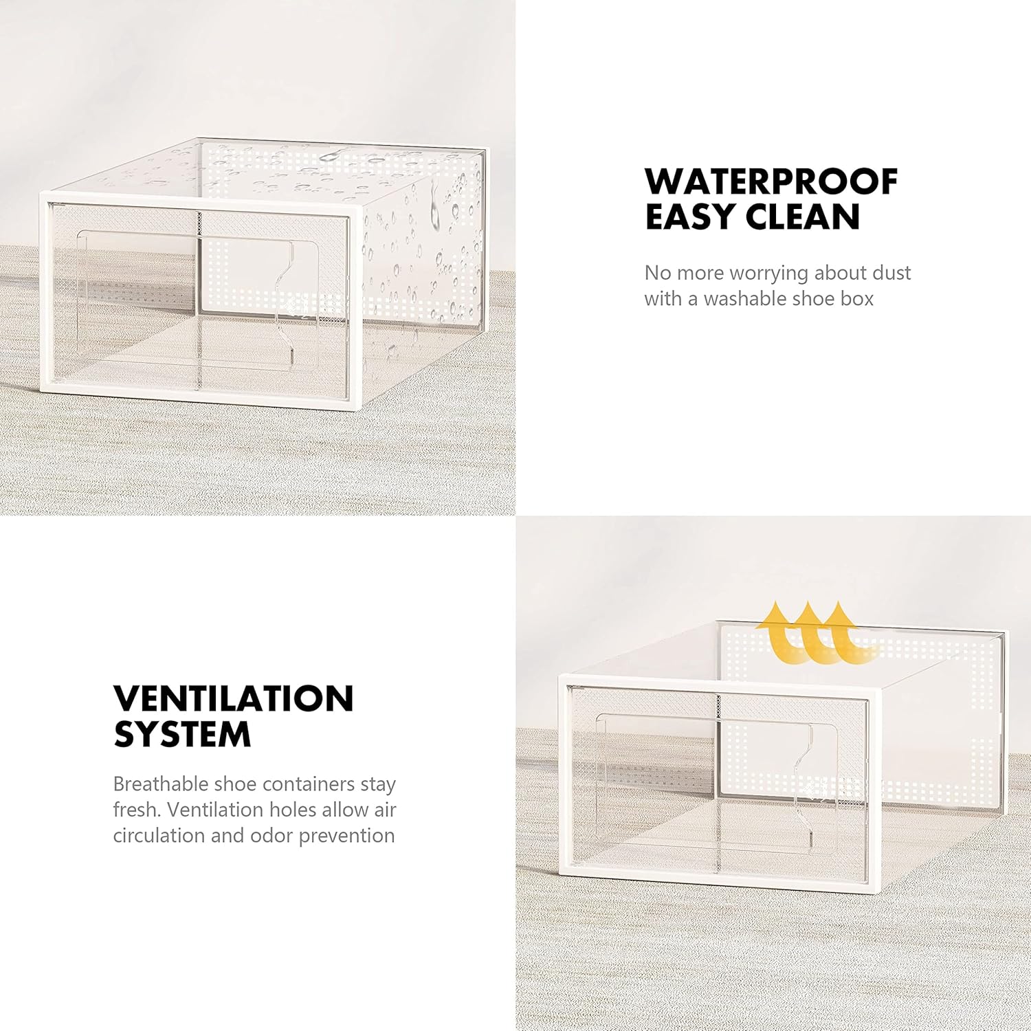 - Sturdy yet Breathable: Made of sturdy and durable premium plastic. Large rear ventilation holes ensure air circulation and odor prevention, breathable shoe containers stay fresh. Easy daily care – clean with mild soap and water.