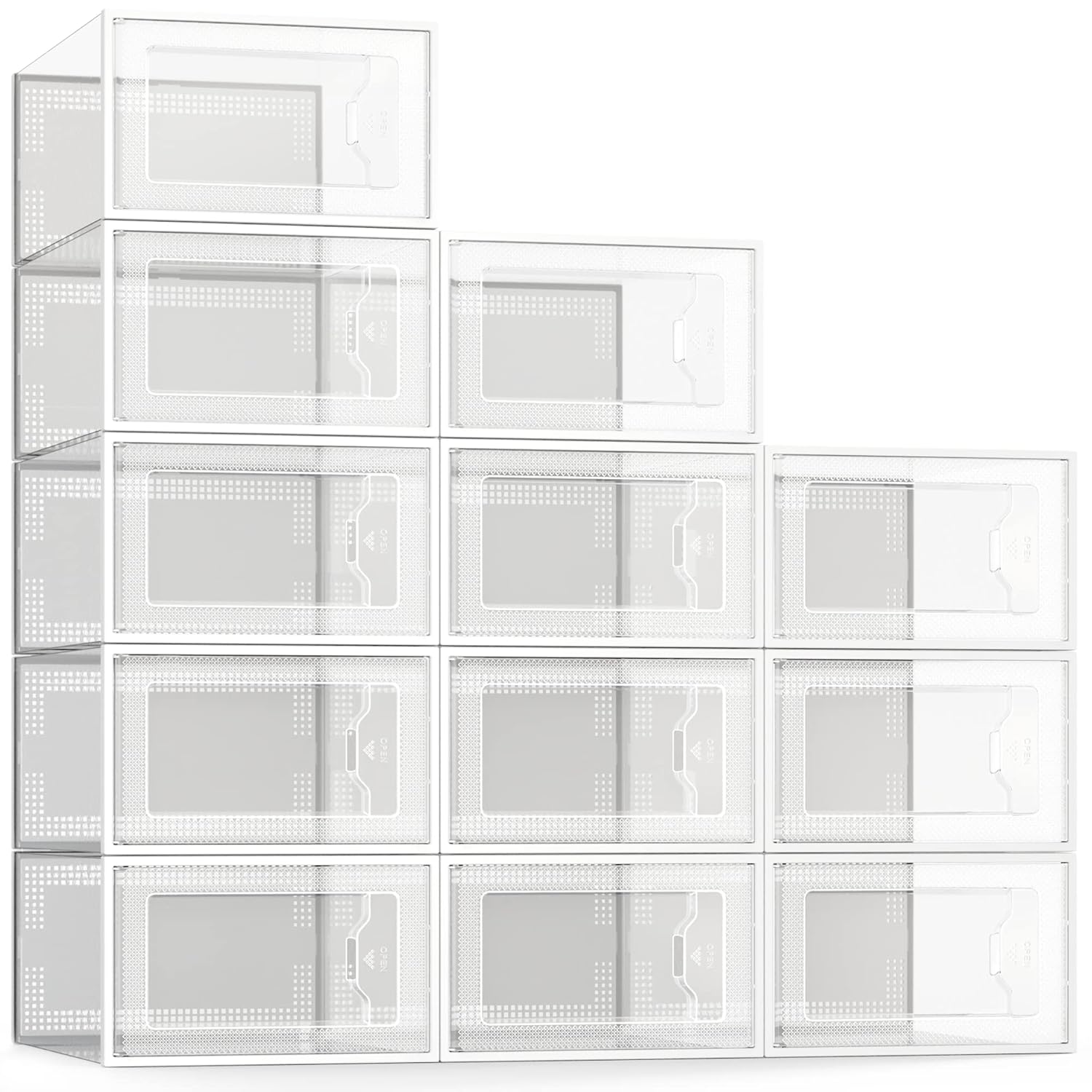 - What You Get: Pack of 12 shoe organizer with clear front door, great substitute for shoe rack, entryway, under bed storage, stackable and foldable design, ventilation holes, easy-to-follow instruction, neatly organize your shoes.