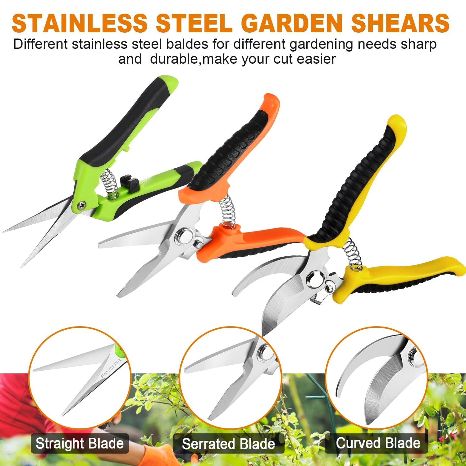 - WIDELY USED: Our pruning shears set include 3 different blades meet your various pruning work. From shaping plants to prune flowers and trimming light branches. The pruner can meet all your cutting needs in the horticultural field. Ideal for florists, orchards, gardens, vegetable plots, yards with outdoor plants