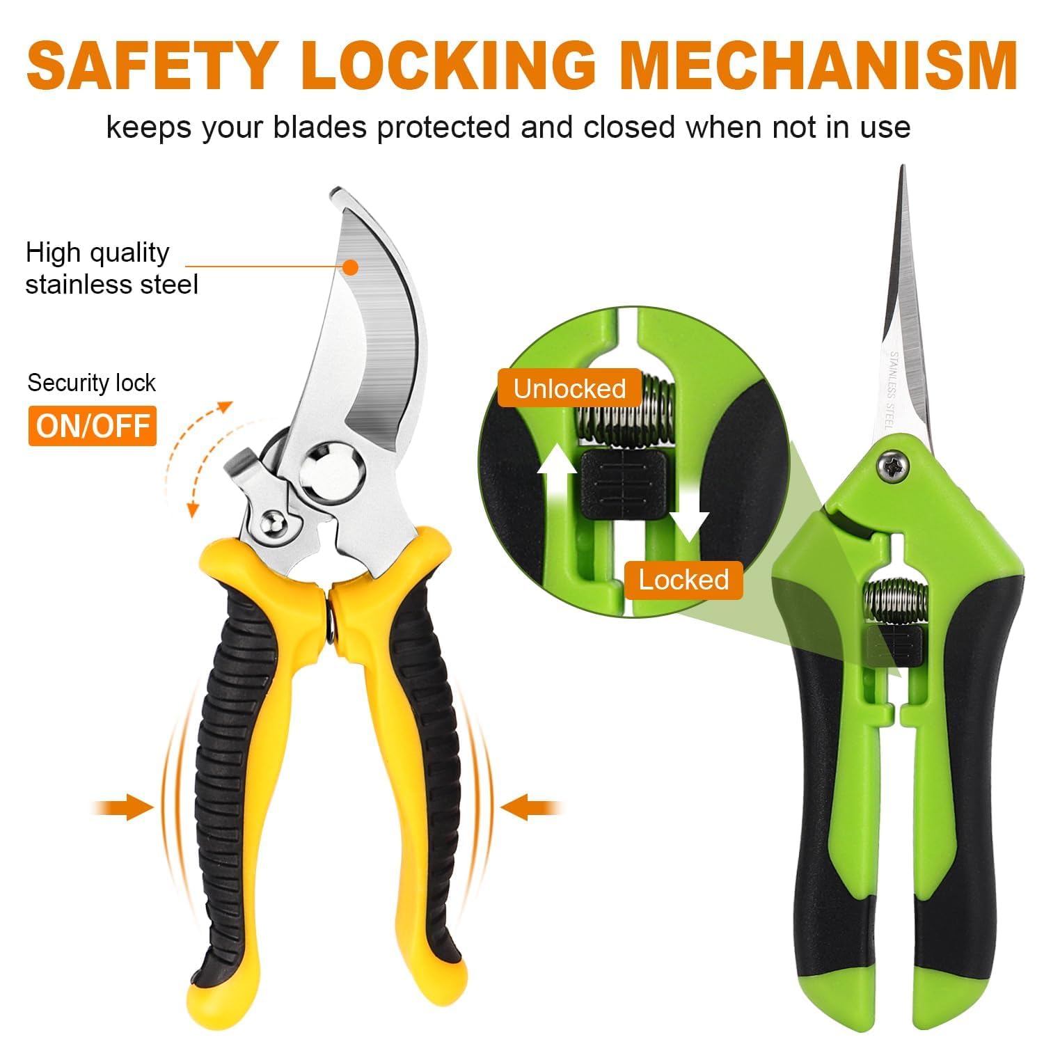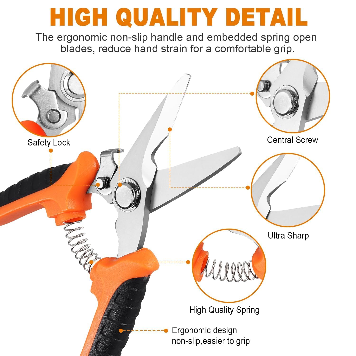 - RUBBER GRIP & EFFORTLESS PRUNING: Our garden shears pruning feature an ergonomic handle design to reduce hand fatigue. The gardening shears with non-slip grip ensures safety and comfort during extended use. High-quality spring help you push the blades automatically, so you can get effortless trimming experience
