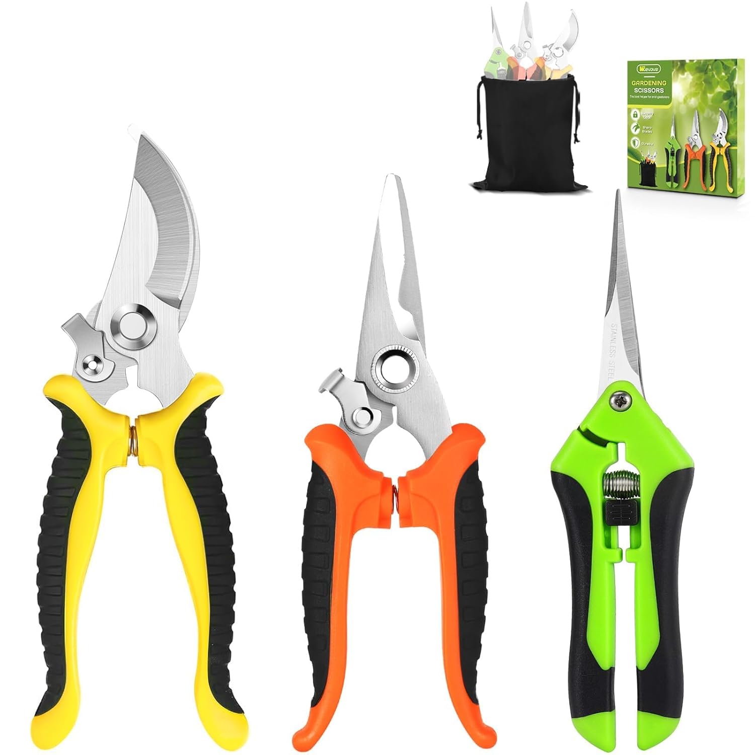 Photos: 3 Pack Garden Pruning Shears, Stainless Steel Gardening Scissors Set with Storage Bag – Sharp Handheld Pruners for Plants, Flowers, Branches – Ergonomic Garden Clippers & Tools by Wevove