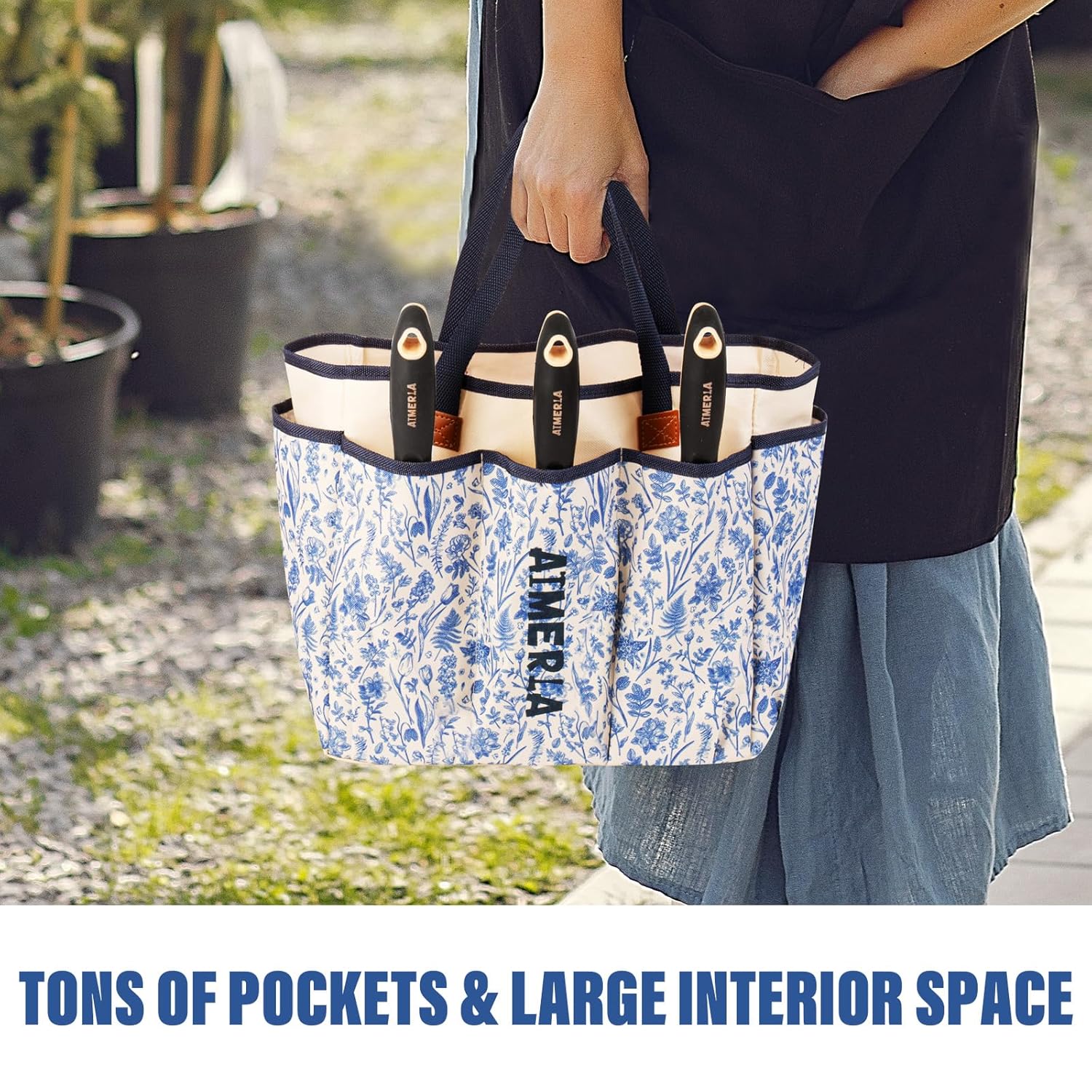 About Aimerla Gardening Tool Set of 5 Heavy Duty Aluminum Garden Tools with Non-Slip Rubber Grip, Fashion Garden Bag, Durable Hand Tools for Gardener, Weeding, Gardening Gifts for…