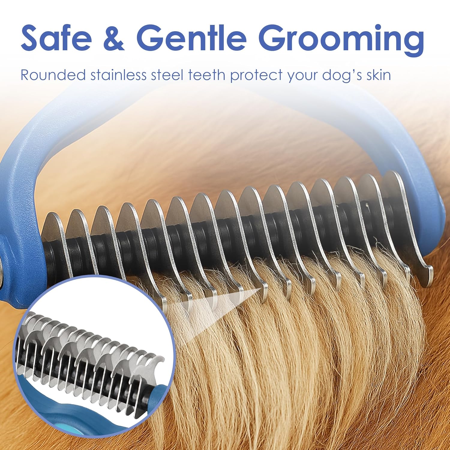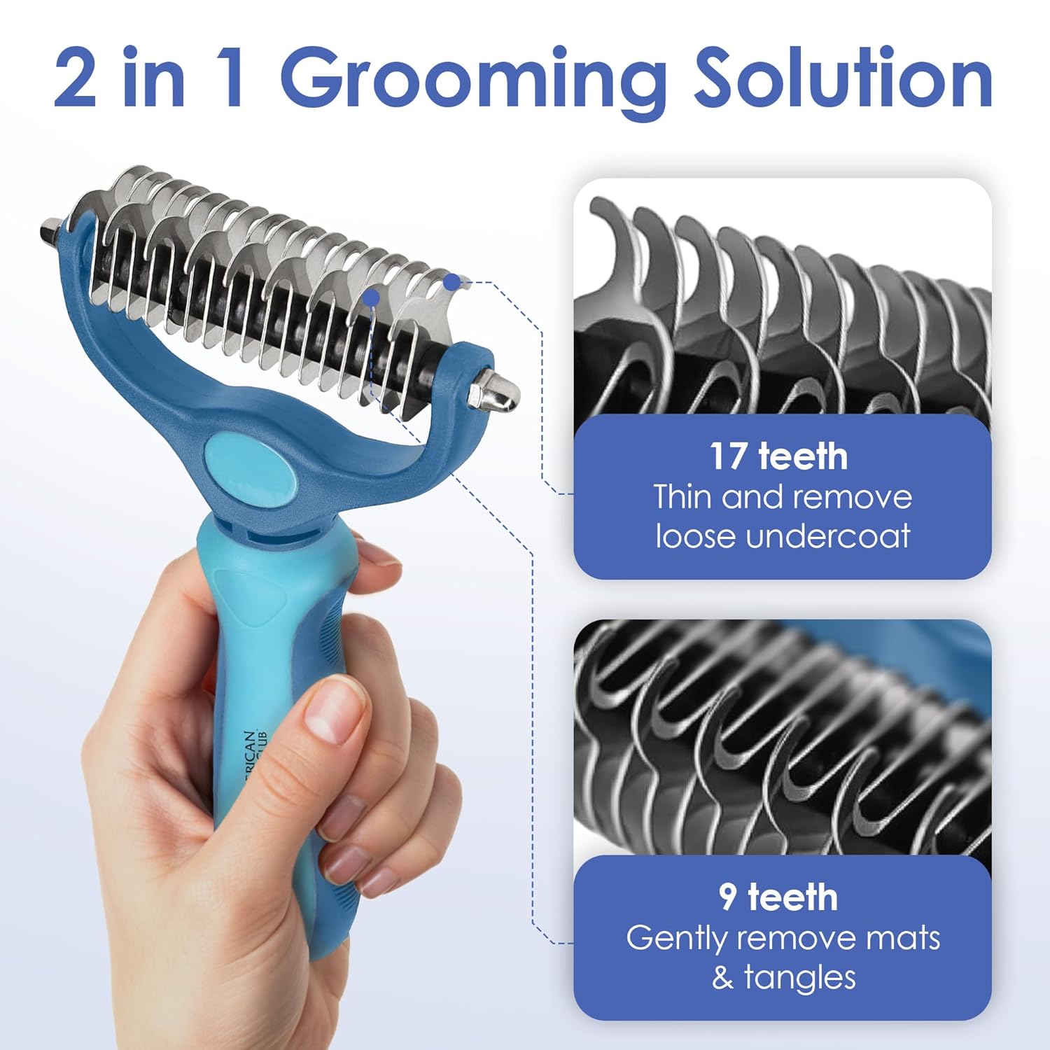 - Dual-Sided Design for Dematting & Deshedding: Use the 9-teeth side to gently remove mats and tangles, then switch to the 17-teeth side to effectively thin and remove loose undercoat hair.