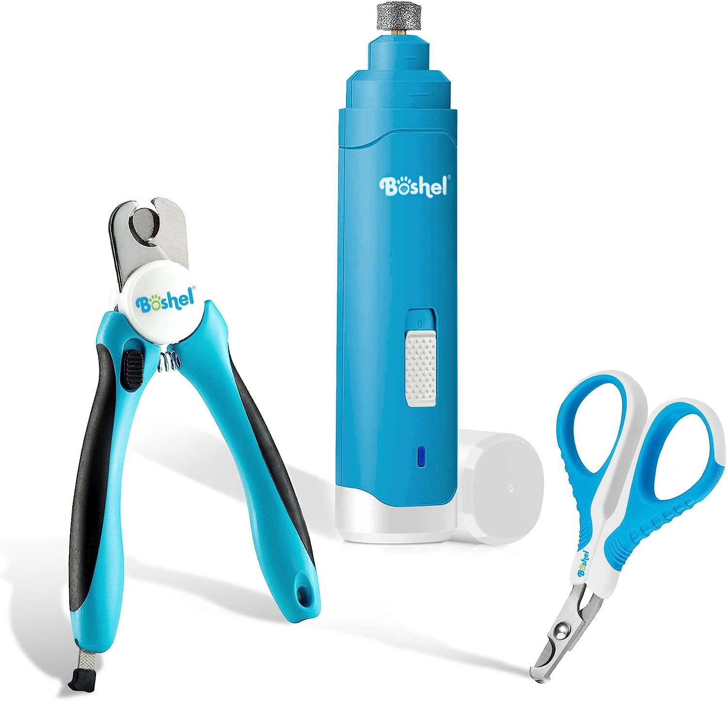 BOSHEL 3-Piece Professional Pet Grooming Tools Set – Include Dog & Cat Nail Clippers with Safety Guards – Rechargeable 2-Speed Pet Nail Grinder – Clippers Feature Razor-Sharp… by Boshel
