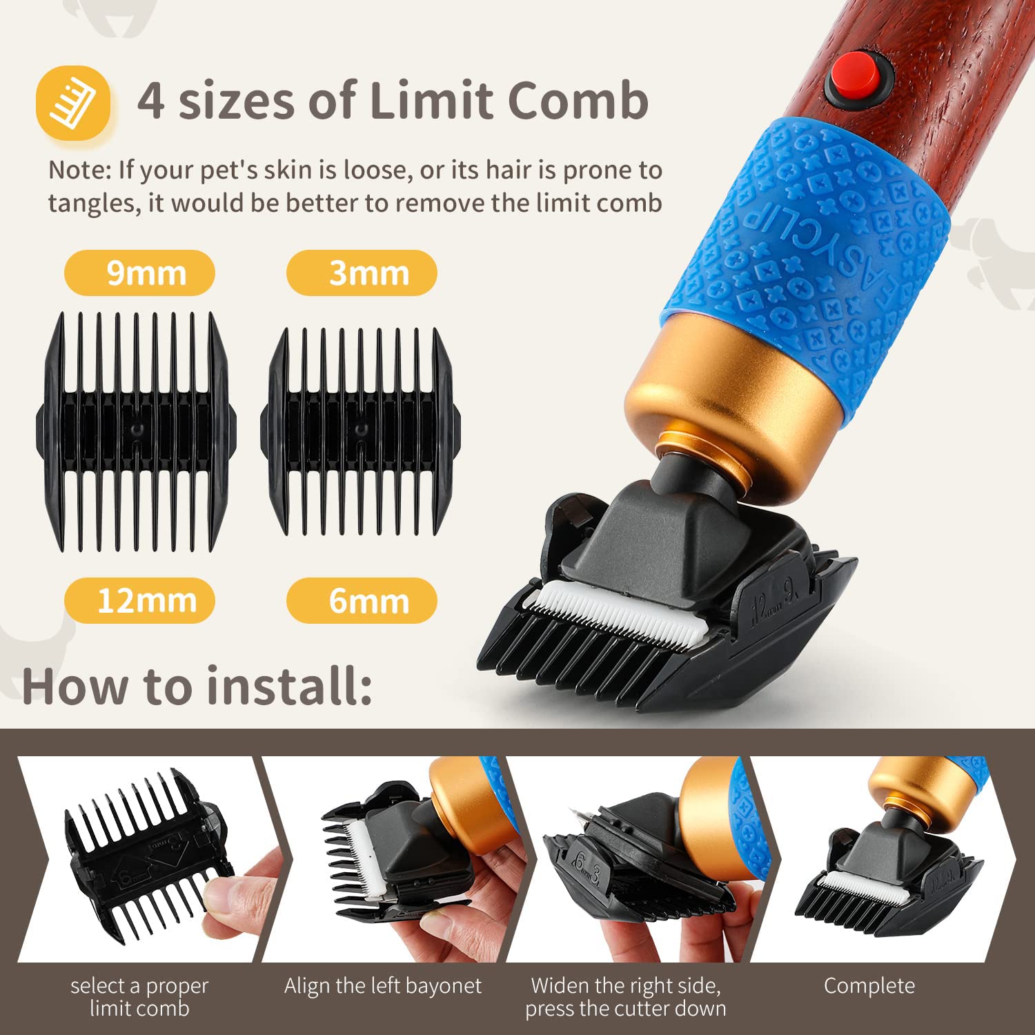 - Remove the Limit Comb: if you find the clipper doesn’t work well when trim the pet’s hair with the the limit comb, please remove the comb first and try to clip the pet’s hair with the clipper directly. The clipper equipped with the limit comb is only suitable for sparse pet’s hair.