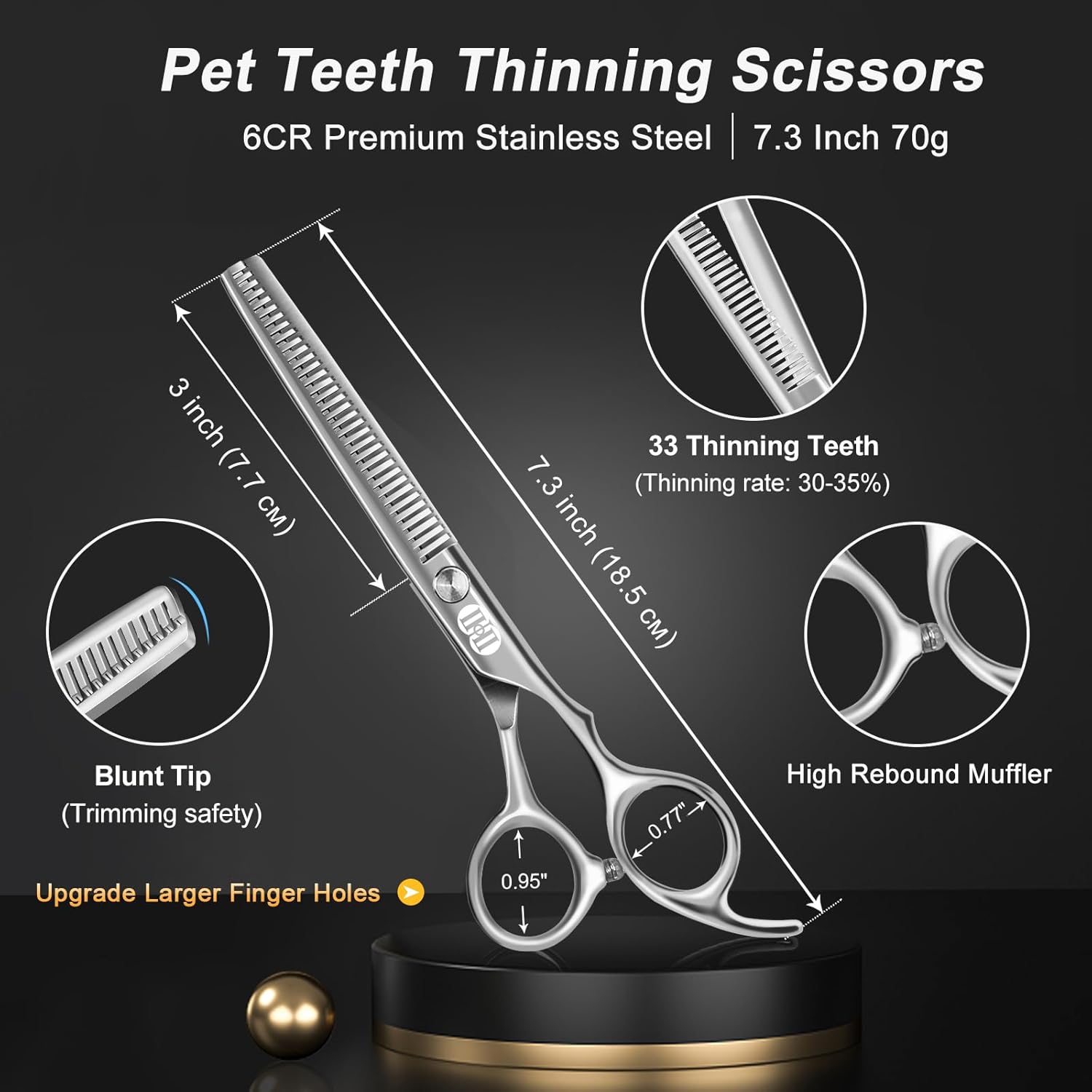 - ✨Practical 10-In-1 Dog Grooming Kit: ●6.1 Inch Straight Cutting Scissors ●7.3 Inch Straight Cutting Scissors ●7.3 Inch Down-curved Grooming Scissors ●7.3 Inch Hair Thinning Scissors ●6.5 Inch Dog Grooming Comb ●Gift Leather Bag (Attached Gifts ☛2 × Hair Clips, 1 × Cleaning Cloth, 1 × Scissors Adjuster). ❤️90-DAYS Unconditional Return + 365-DAYS Promise for any quality-related issues, CIICII professional customer team will handle your issues and help you in 12 hours.