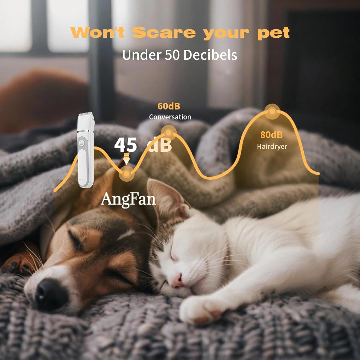 - ใSafe Pet-Friendly Designใ Ceramic blades with rounded edges protect skin during trimming. 3mm/1.5mm combs ensure precise length control. Backed by ANGFAN’s quality guarantee for worry-free home grooming.