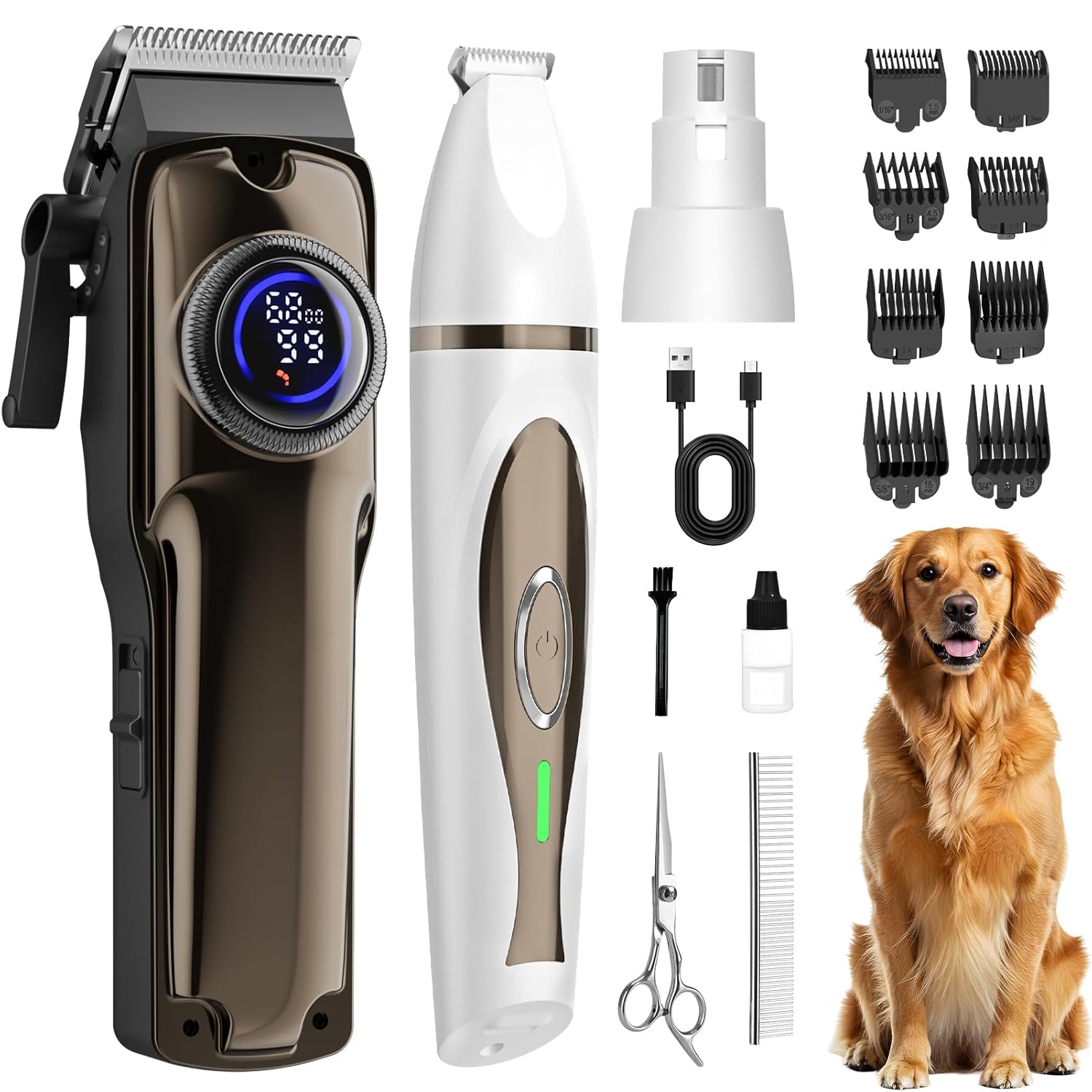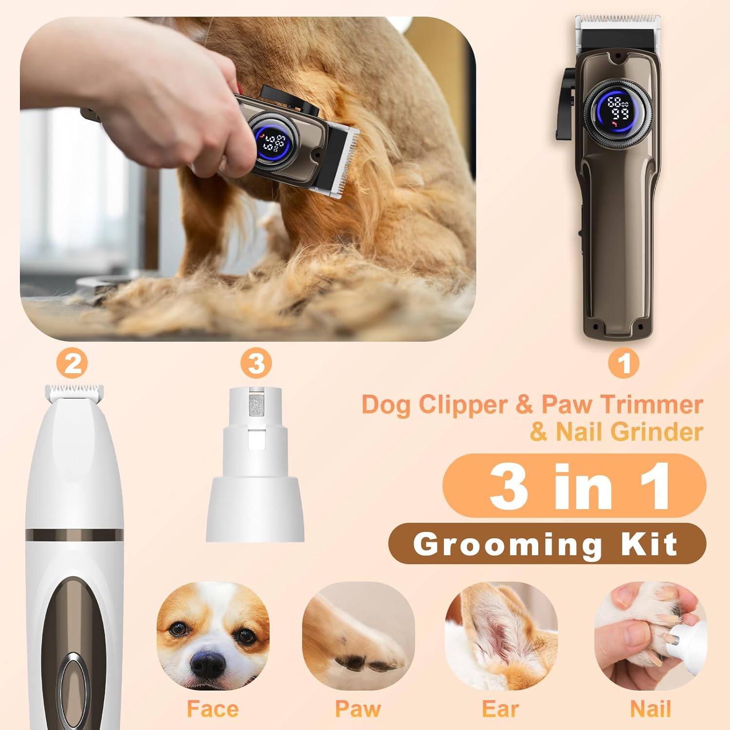 - LED Display & Long-Lasting Battery: Stay in control with real-time battery monitoring,features LED display shows remaining power at a glance. The wide-blade dog shaver features a 2200mAh high-capacity battery, while the precision dog paw trimmer runs on a 1000mAh battery. Both charge via USB-C, ensuring about 2 hours of cordless grooming per charge. No more mid-session power anxiety—groom with confidence from start to finish