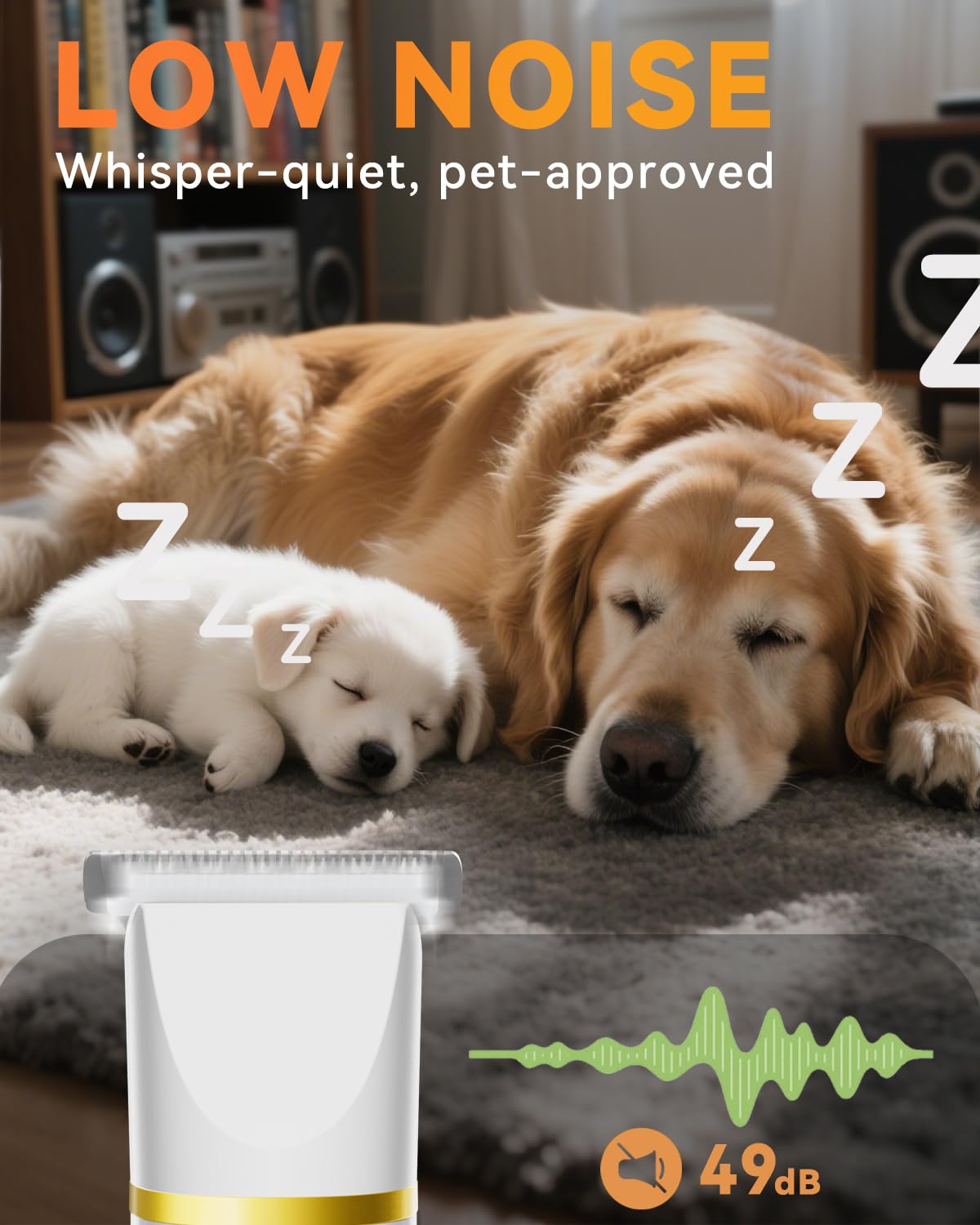 - Great Pet Home Grooming Kit: The noise is about 55dp when the pet hair clipper working, it achieved the perfect balance between powerful cutting and low-noise operation. Whether it is trimming the hair on the claws or the eye sockets, everything is done easily. It can be used cordless and corded, and the convenient USB charging design allows you to trim your pet anytime, anywhere, making your pets love grooming!