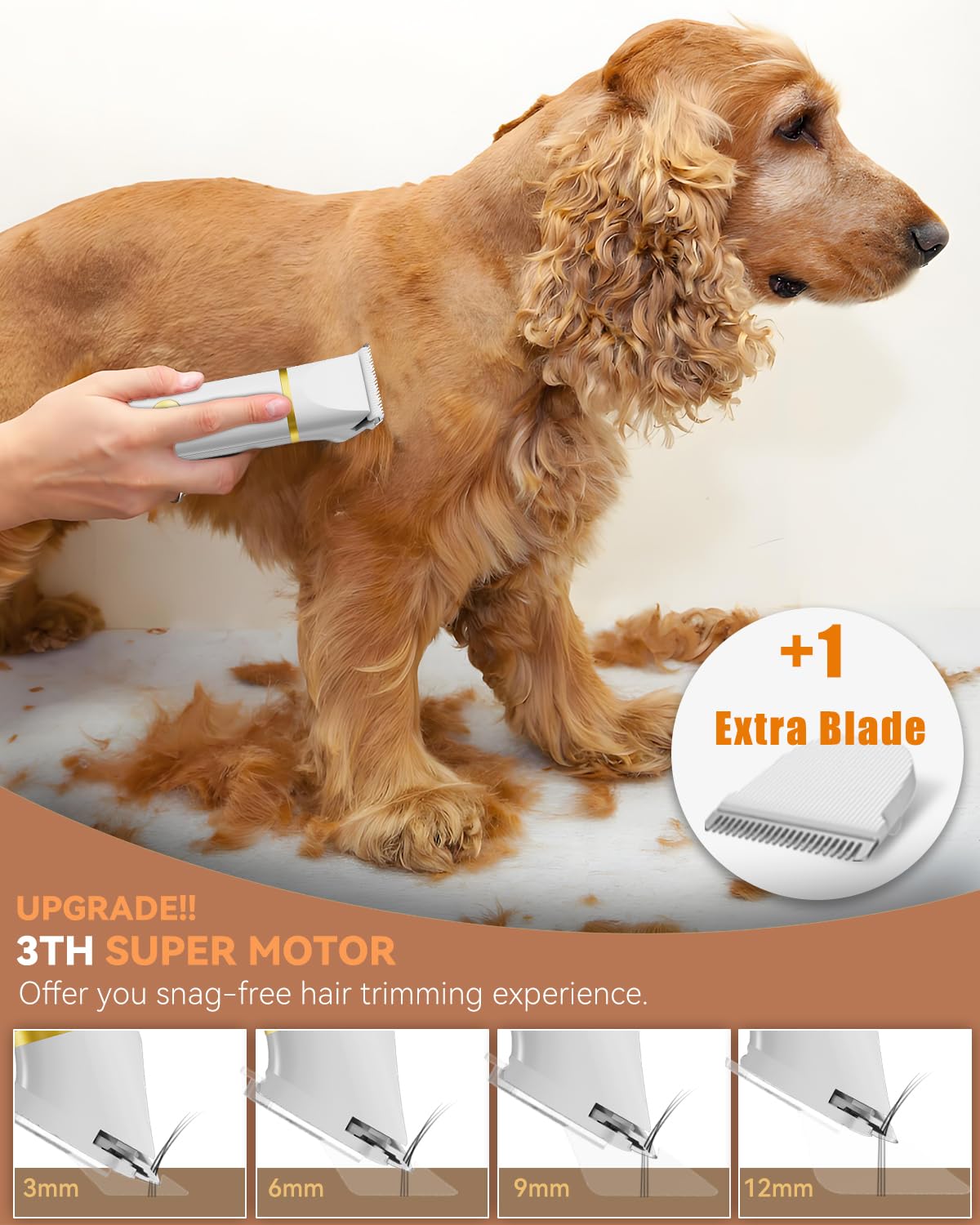 - Snag-free Cutting and IPx7 Waterproof: Driven by upgraded heavy-duty motor, bring more power to your clipping work,combined with the sharp ceramic blade, it can provide excellent cutting performance and greatly reduce the discomfort of your pet. We’ve also provided additional standard blades that can be replaced with just one push of the thumb,and the IPx7 waterproof design allows you to wash directly in water, making your cleaning and maintenance more convenient and fast.