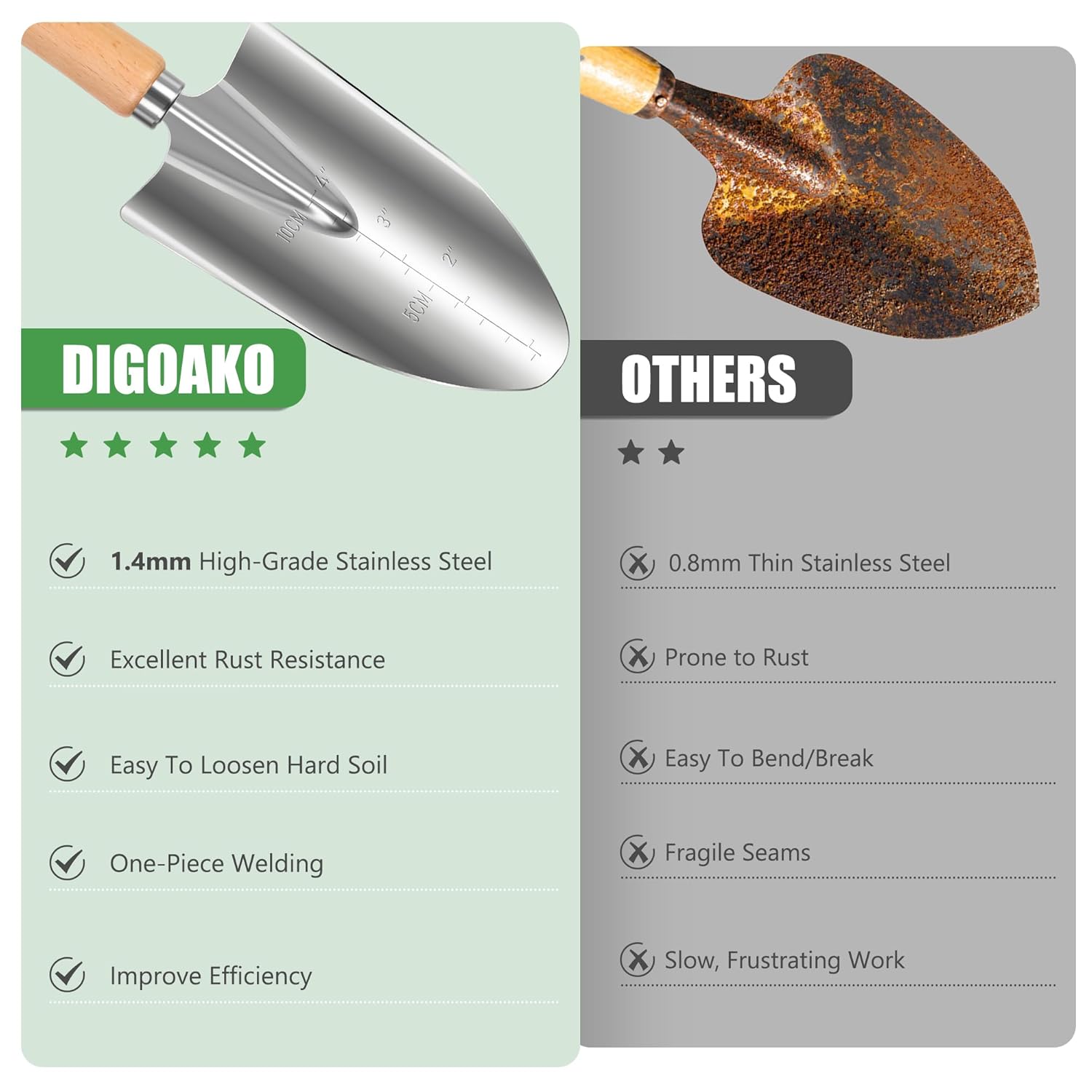 - 🛡️ [Stainless Steel Garden Tool Set] – Crafted with heavy-duty stainless steel, these garden tools resist rust, corrosion, and deformation—ideal for heavy soil, weeds, and year-round use.