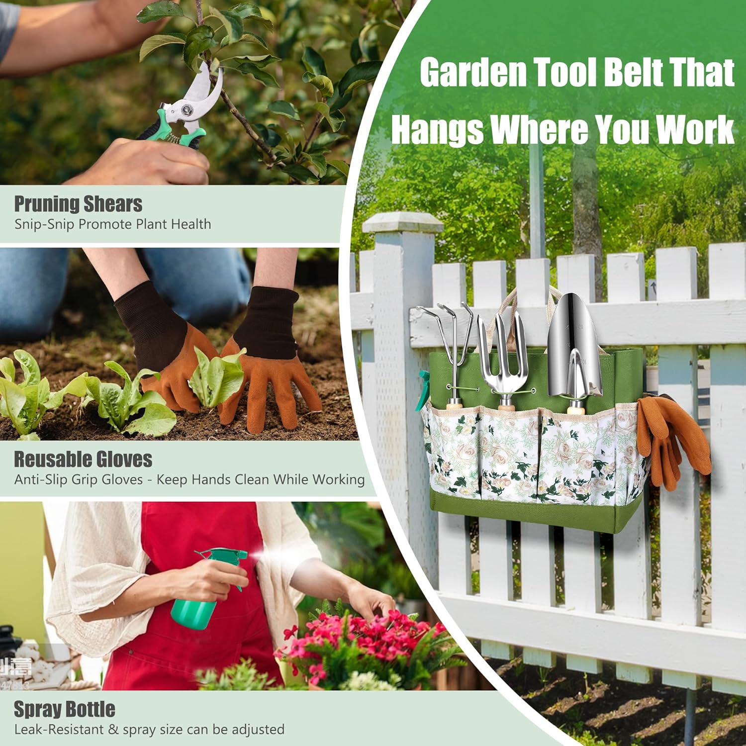 - 🧺 [Space-Saving Garden Tool Organization] – Reinforced garden tool tote features dedicated slots to organize garden supplies instantly. Saves 50% storage space vs. bulky sets.