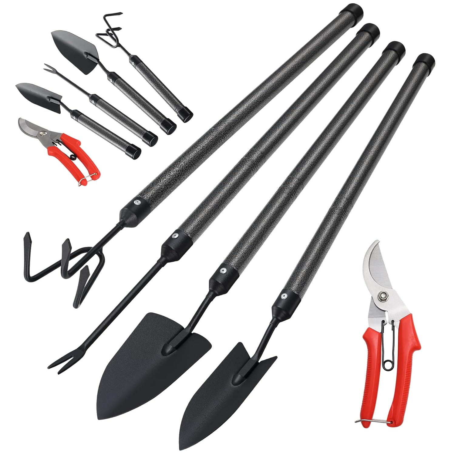 About Garden Tools Set with Extension Handles, 5 Piece Thick Gardening Hand Tools, Heavy Duty Steel Rust-Proof Weeding Planting Tool Ideal Gardening Kit Gifts for Women and Men
