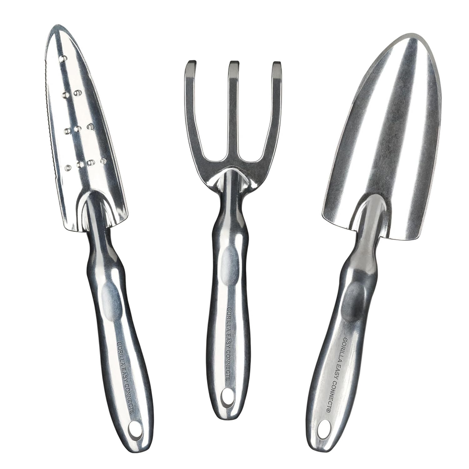 Specification: Gorilla Easy Connect Heavy Duty Garden Tools with Digging Trowel, Transplant Trowel and Cultivator Hand Rake Solid One Piece Cast Aluminum Construction by GORILLA EASY CONNECT