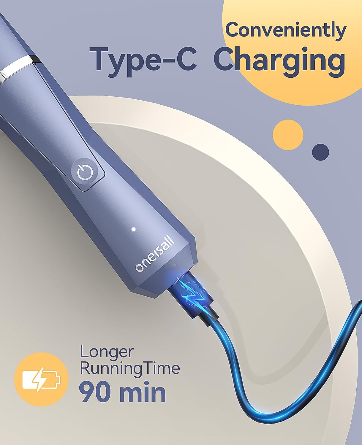- [90-Min Runtime & Fast Type-C Charging]: oneisall dog hair trimmer can Groom 2+ dogs nonstop with 90 minutes of cordless power—no sudden shutdowns! Fully charges in just 1.5 hours with Type-C (works with phones, laptops, or power banks). The LED battery indicator keeps you informed, so it’s always ready for your next session. Efficient, reliable, and hassle-free!