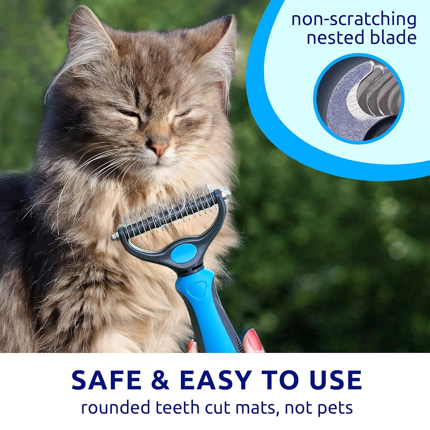 One of my cats has long hair and hates being brushed, so has often gotten matted and has needed to he taken to the vet for sedation and shaving, which isn’t great for his health, my bank or nice for him if it’s getting colder. Regular brushes just pulled at his fur and he would bite and scratch to get away and nothing helped. I bought this thinking I probably won’t have any more luck with it, but am actually so pleased. It cuts through the knots and pulls out all the excess fur with ease and minimal pulling. Even though he still doesn’t enjoy being brushed with it, I can get more strokes in before he tries to leave and it’s actually working rather than just brushing the fur on top and doing nothing to the knots underneath. If you have a pet who gets knots then definitely get this!
