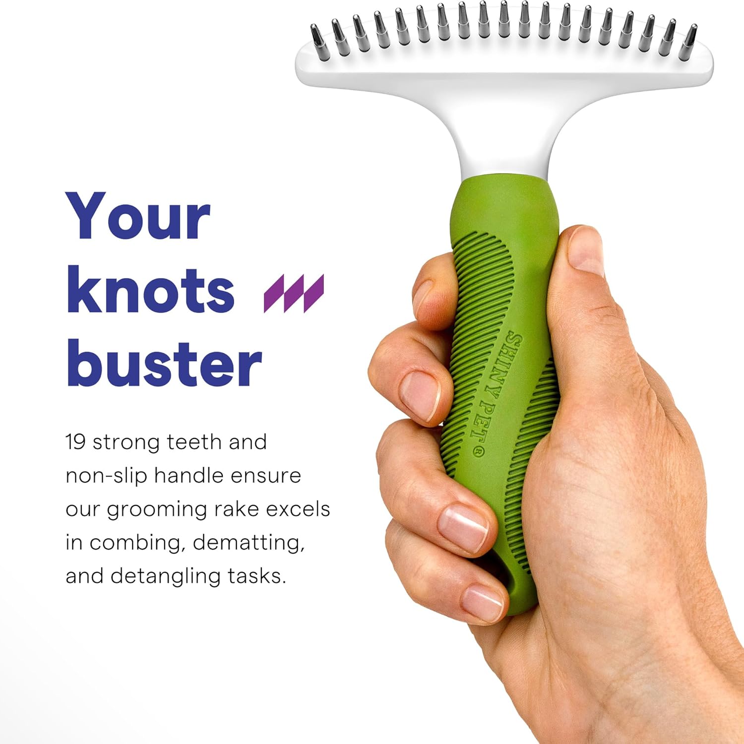 - Skin-Safe & Worry-Free: The grooming rake features rounded stainless-steel teeth that prevent scratches while effectively removing knots and tangles.