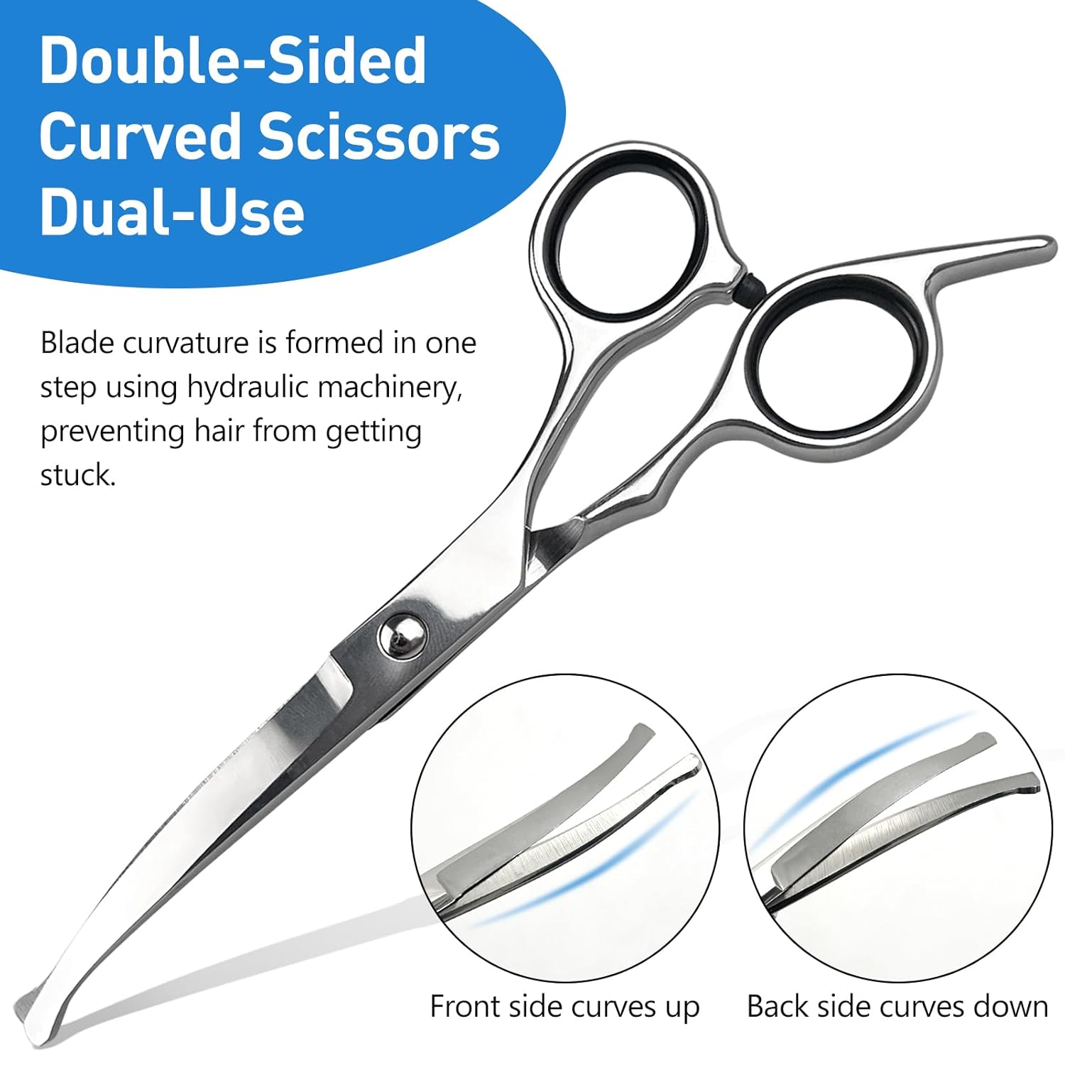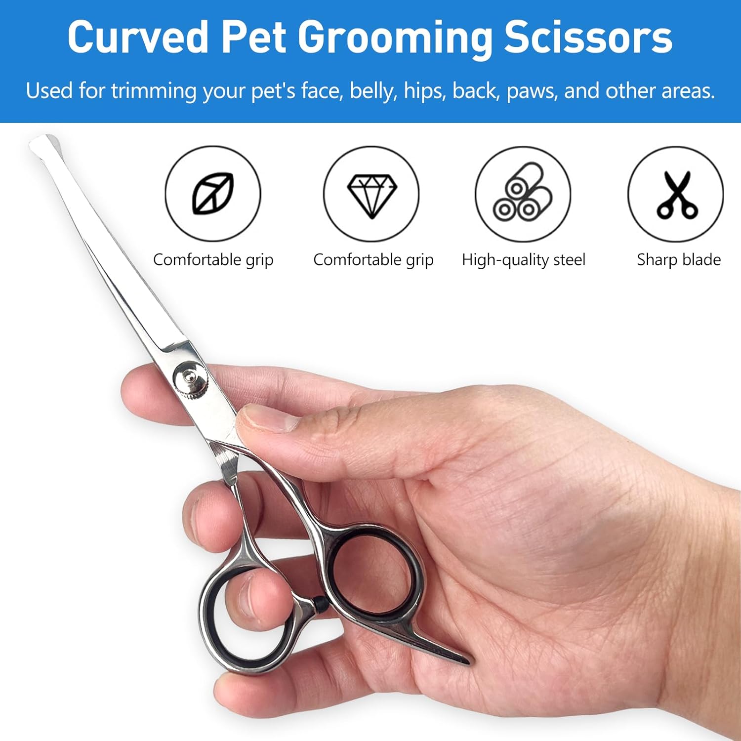 - Each pair of our curved dog grooming scissors is equipped with safety-oriented rounded tips, ensuring your pet’s delicate areas are trimmed without risk of injury.