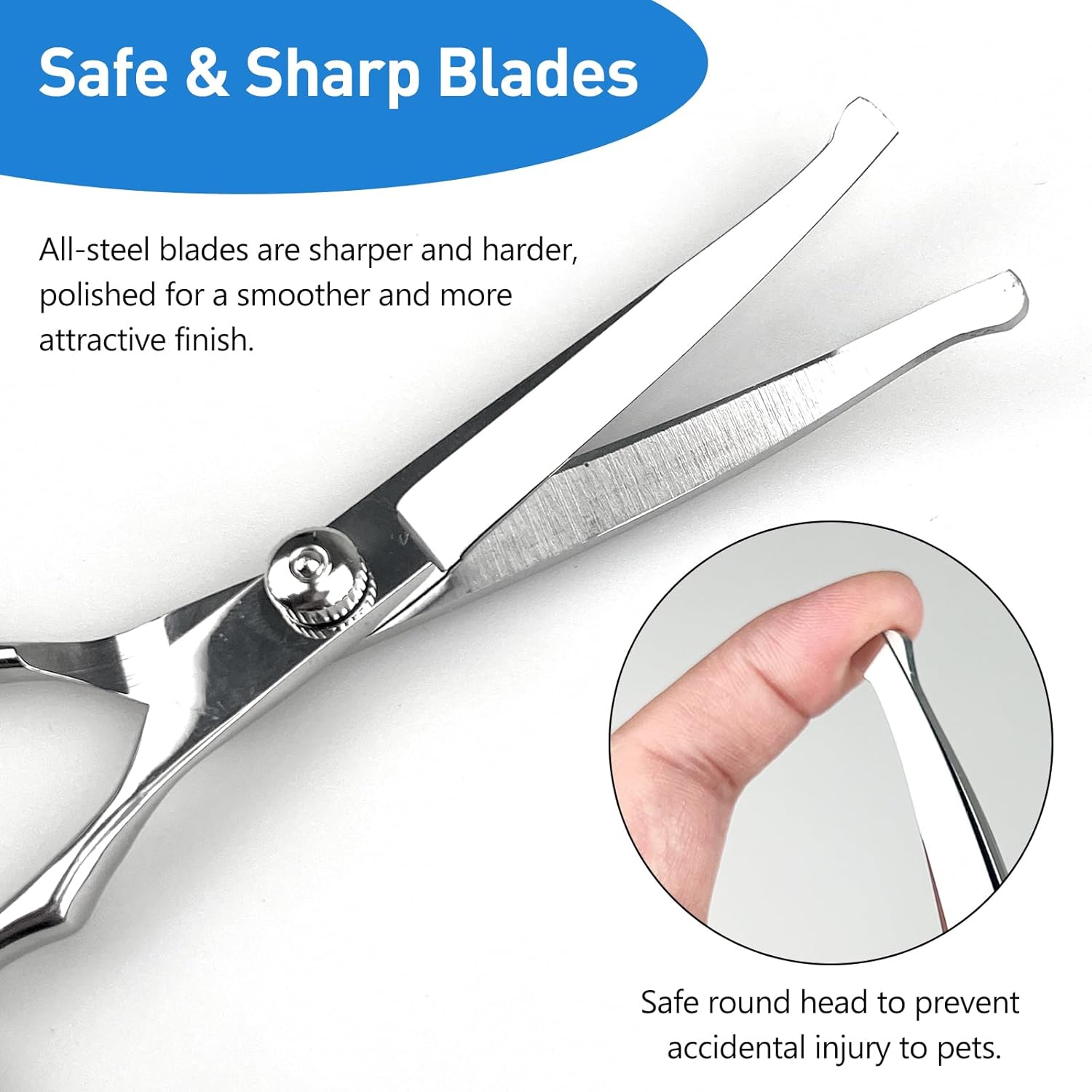 - Ideal for both professional groomers and novices, these scissors are essential for anyone looking to safely and efficiently trim and style their pet’s face and body hair at home.