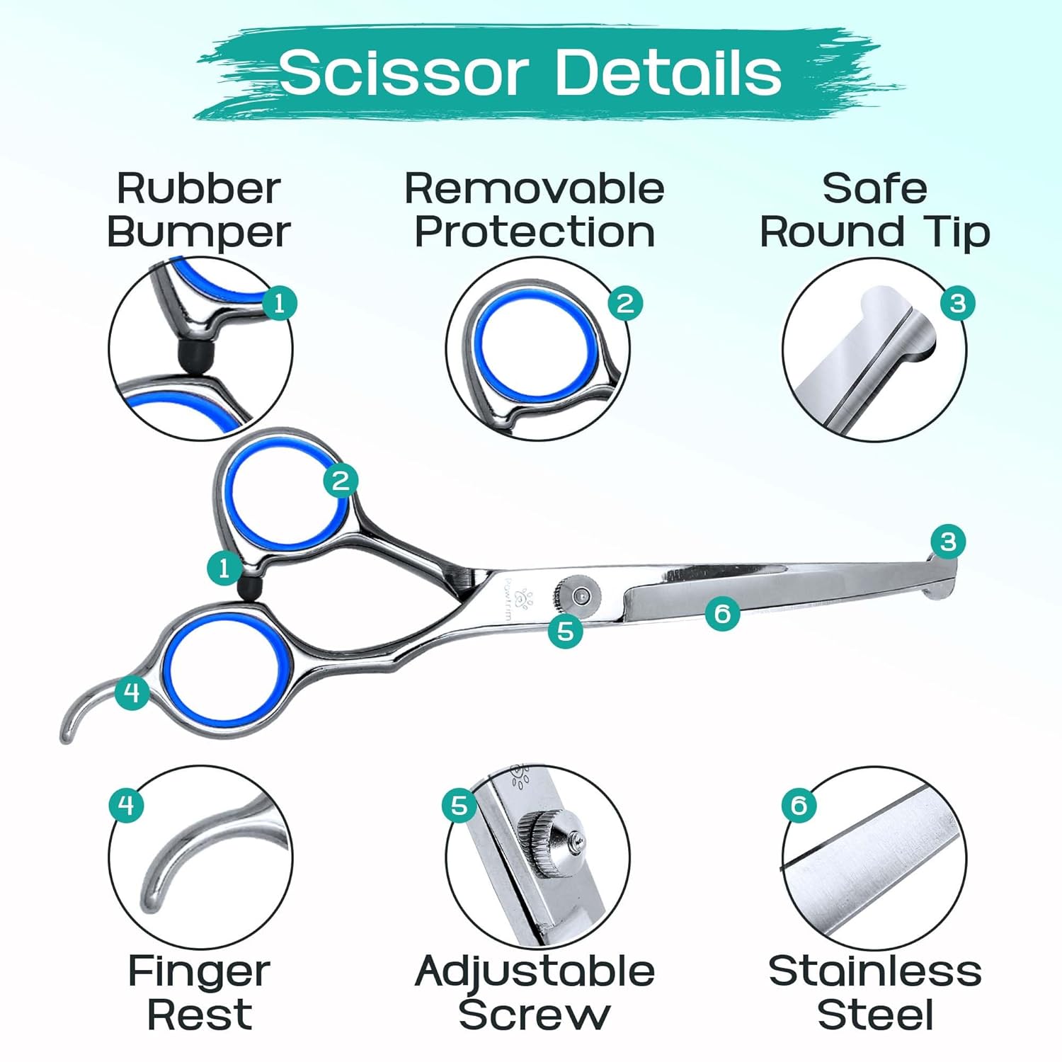 - Thoughtfully Designed for Comfort and Precision: From strong rubber grips and safety round tips to sharp blades and adjustable screws, our Dog grooming scissors and other Dog grooming supplies are designed for comfort, stability, and precision, reducing the risk of slips during grooming sessions.
