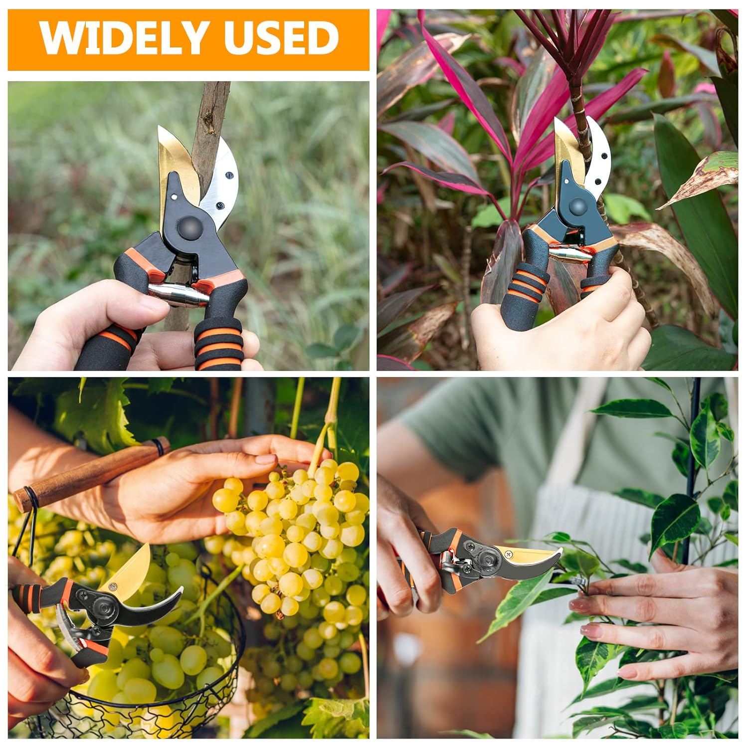 - ใVersatility Pruners For Gardeningใ- Suitable for pruning all kinds of plants, cutting flowers, cleaning weeds, pruning fruit trees, cutting and picking fruits and vegetables, sorting out messy branches on the roadside and so on. Basically suitable for all your yard plants .