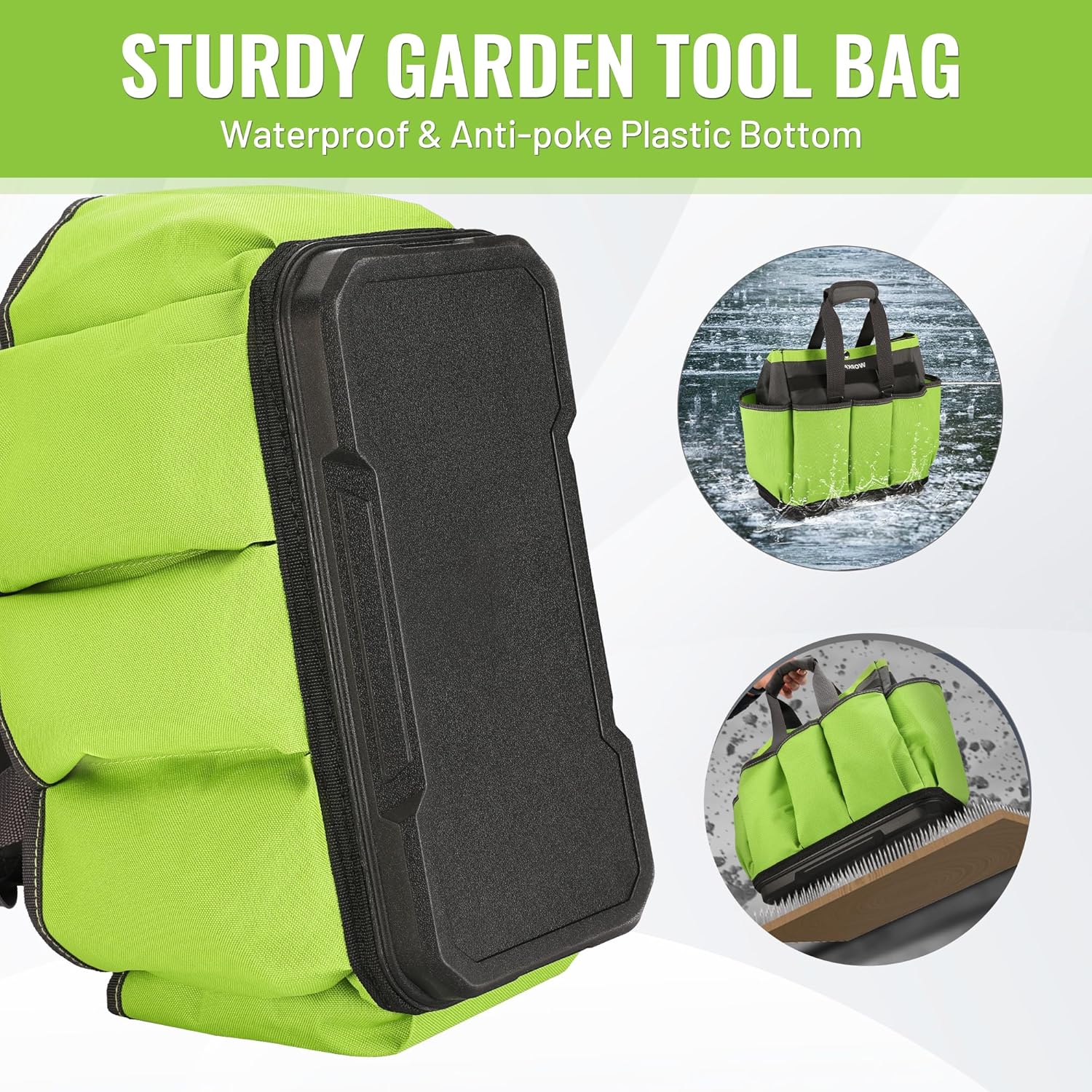 - WATERPROOF PLASTIC BOTTOM- This garden tool bag has been upgraded with a waterproof plastic bottom, which not only keeps the bag upright but also more stable. Even if you carry it outdoors on a rainy day or put it on the ground, you don’t have to worry about getting your bag dirty