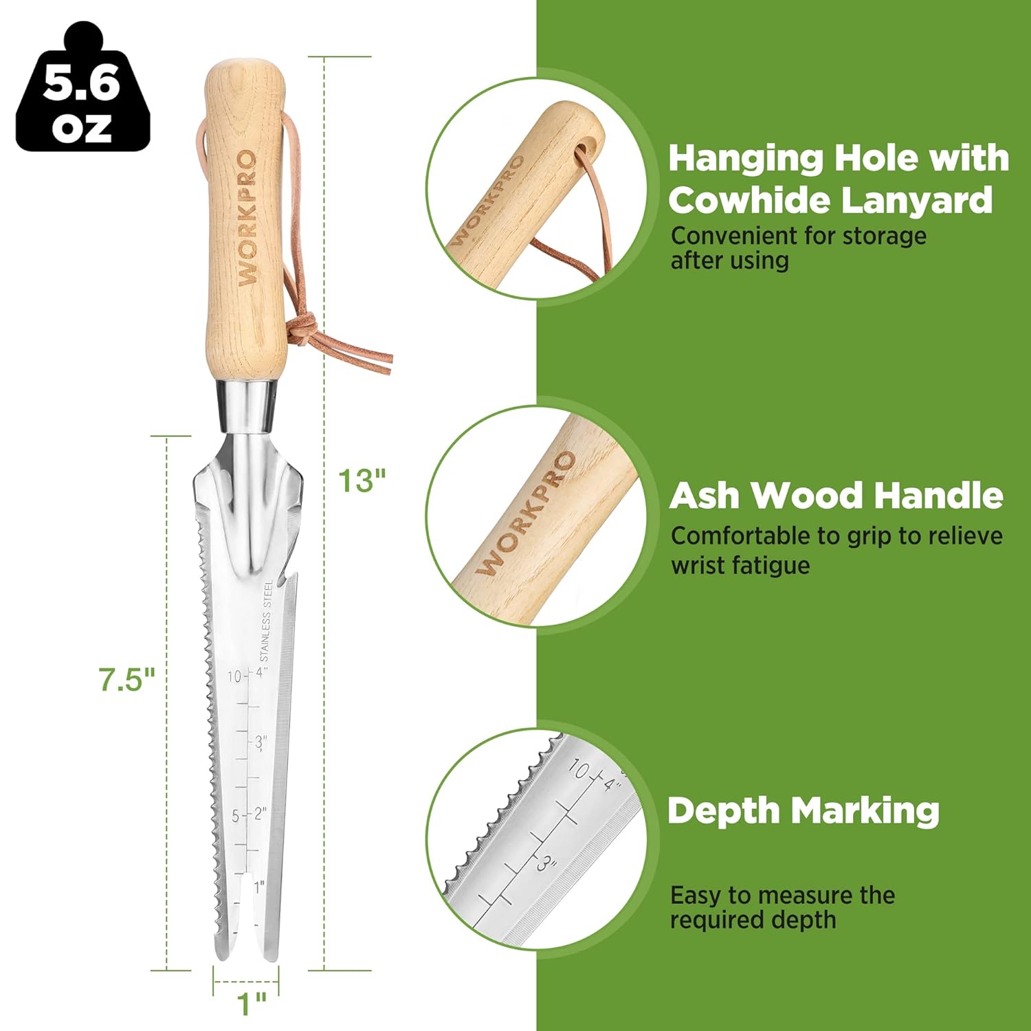 The WORKPRO Hand Weeder Puller, 5-in-1 Stainless Steel Garden Trowel with Wooden Handle,Gardening Weeding Tool for Easy Weeder Removal, Planting, Weeding, Flower & Vegetable Care in… by WORKPRO combines reliability, modern design, and user-focused engineering. Perfect for everyday use, it delivers dependable results for American customers who value comfort.