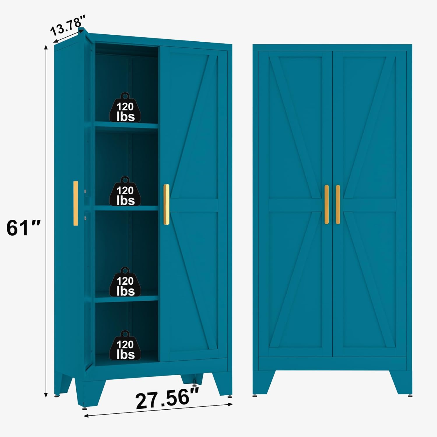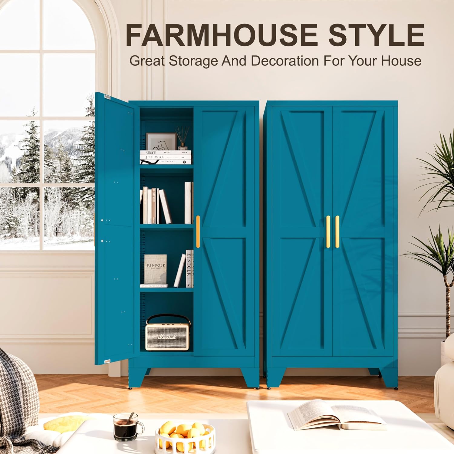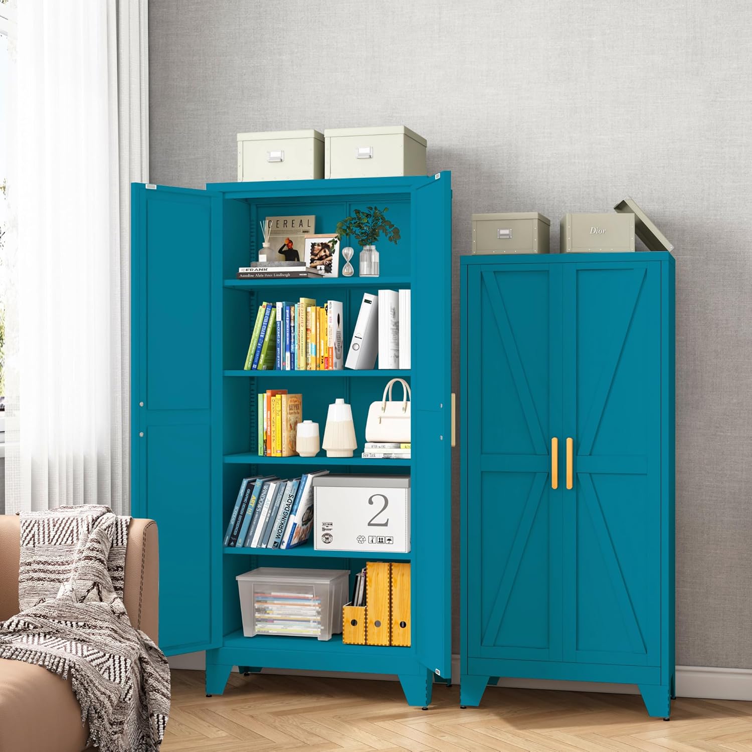 About 61H Metal Storage Cabinet with 2 Doors and 5 Shelves,Farmhouse Storage Cabinet with Barn Doors,Pantry Storage for Home,Office,Bathroom,Dining Room,Kitchen(Blue)