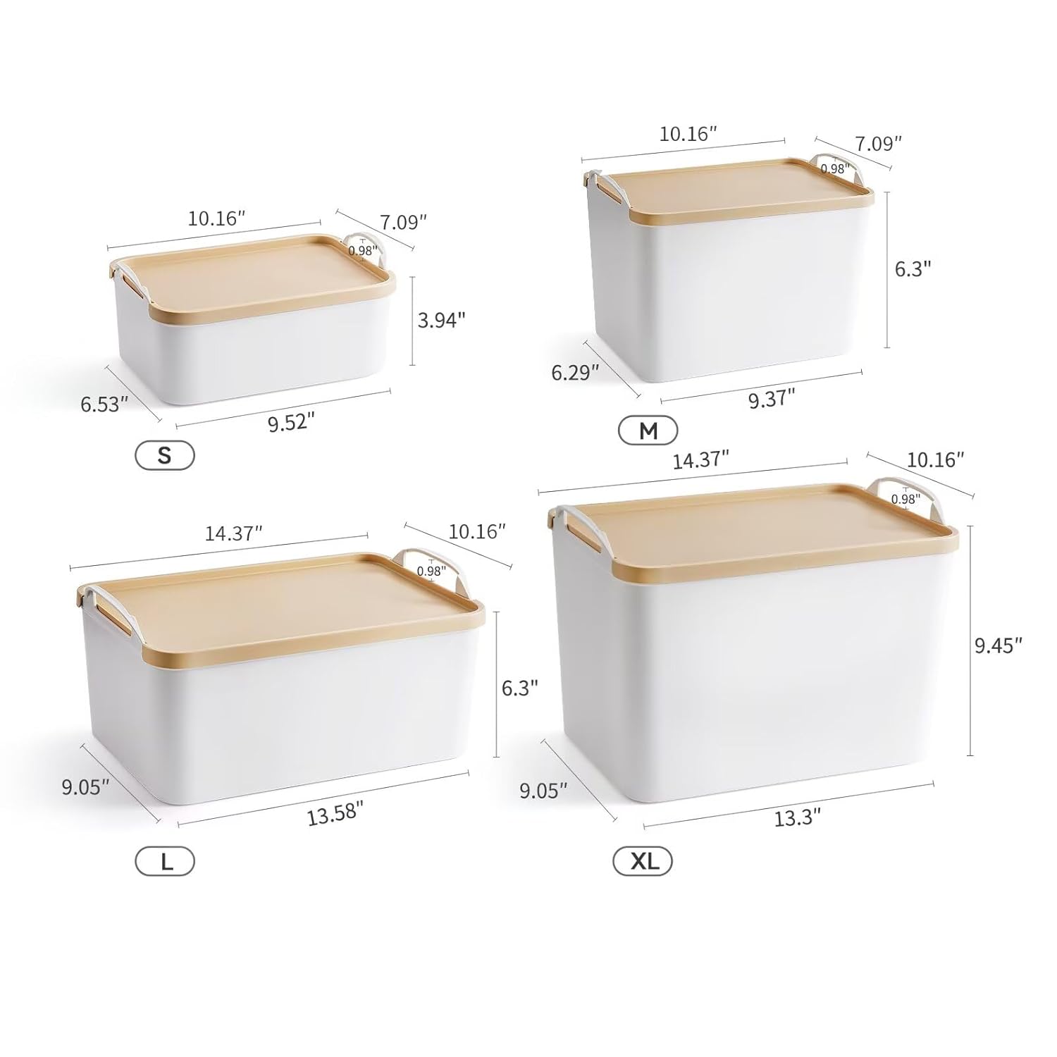- Upgraded Functional Design:lids and no exposed handle holes to keep out dust/moisture;top-mounted wide handle prevents pinched fingers. Non-slip base + interlocking grooves for secure stacking