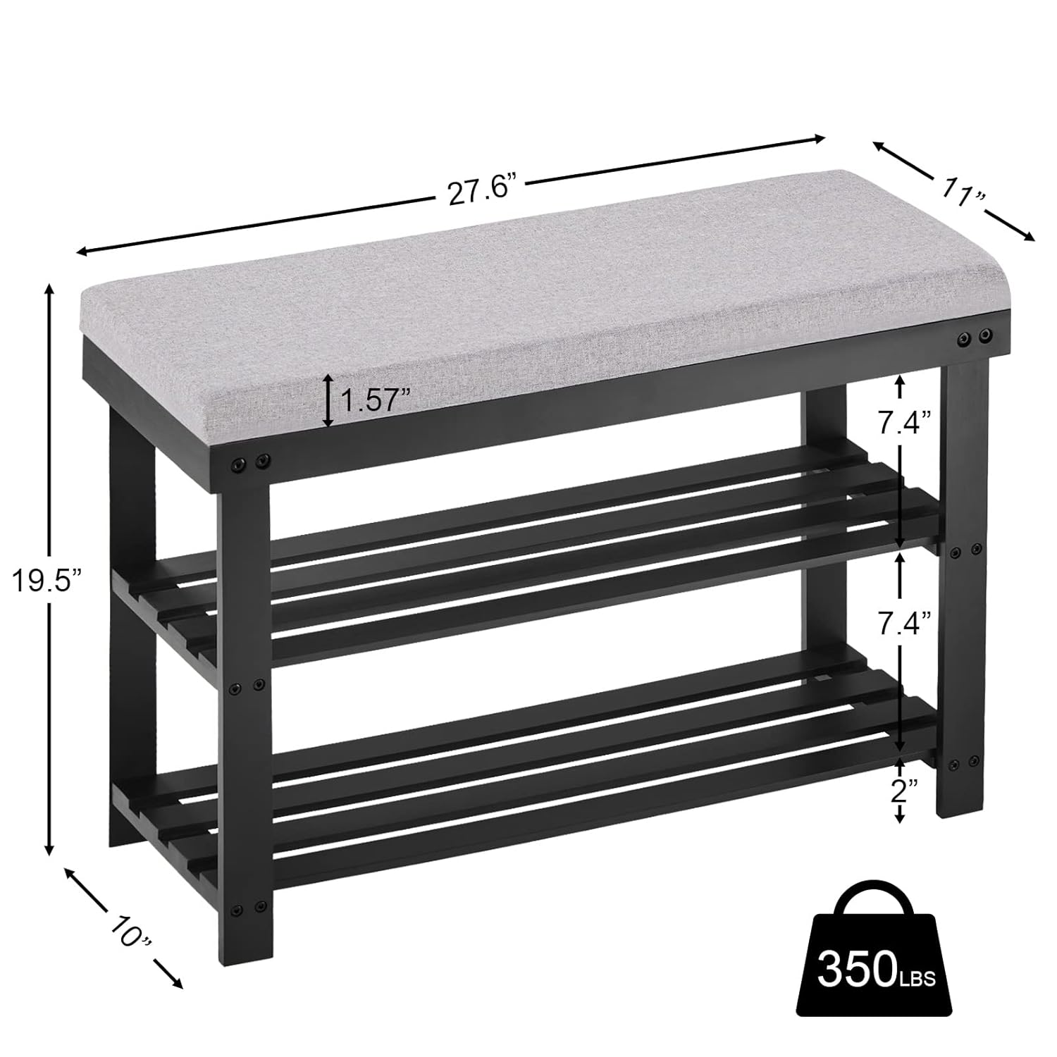 Specification: Apicizon 3-Tier Shoe Rack for Entryway, Bamboo Shoe Bench with Cushion Padded Seat, Small Shoe Organizer with Storage for Indoor Entrance Hallway Bedroom Living Room, Black by Apicizon