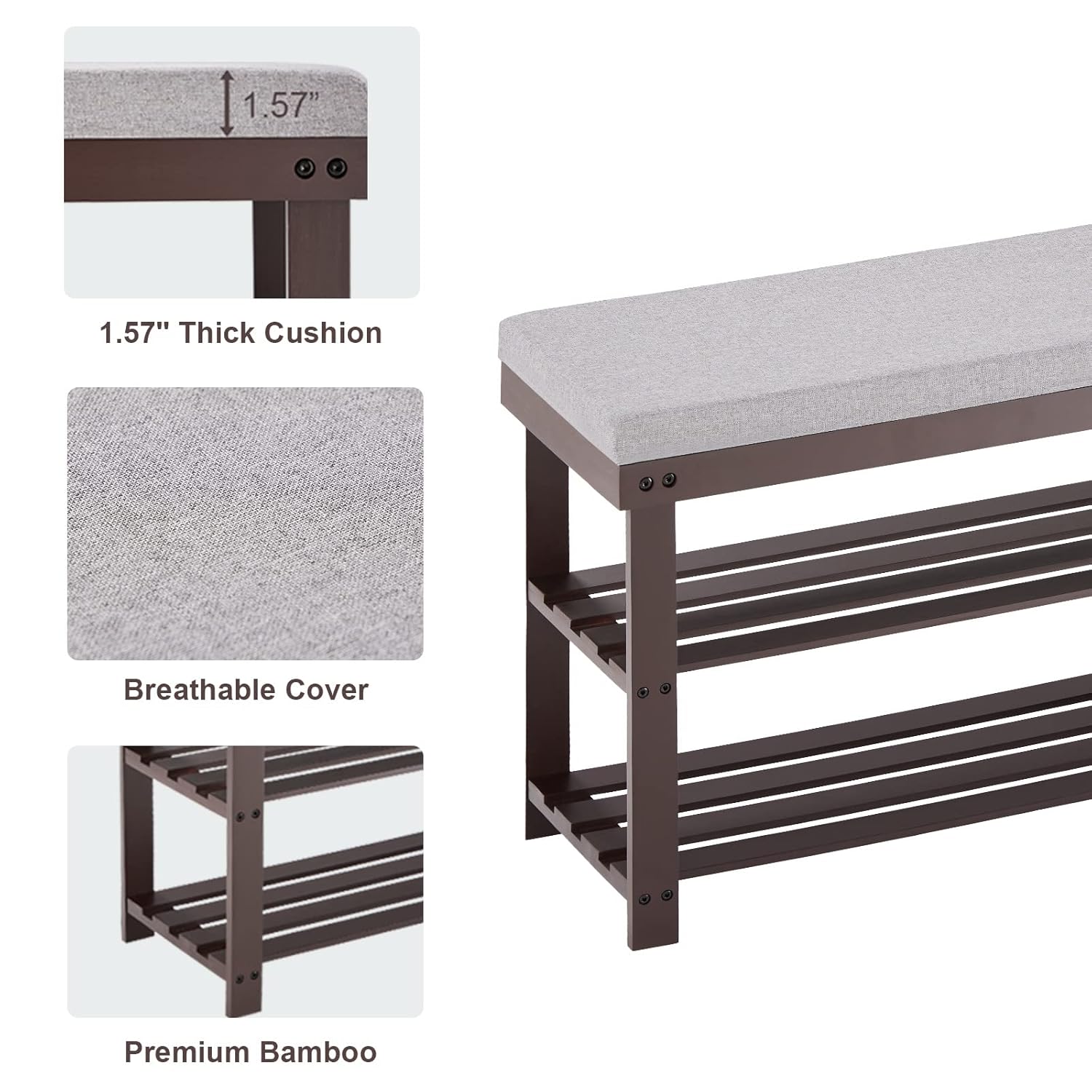 Specification: Apicizon 3-Tier Shoe Rack for Entryway, Bamboo Shoe Bench with Cushion Padded Seat, Small Shoe Organizer with Storage for Indoor Entrance Hallway Bedroom Living Room, Brown by Apicizon