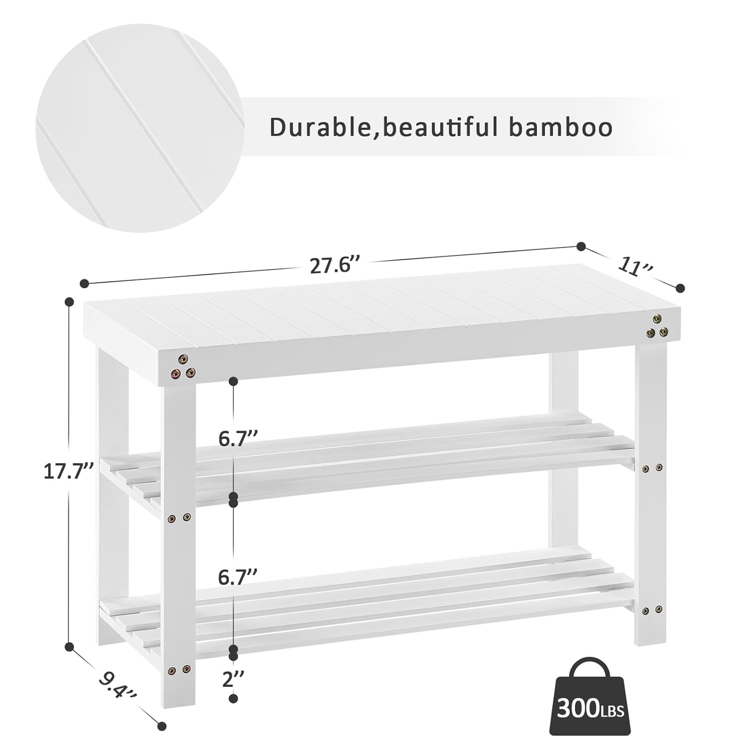 Specification: Apicizon Bamboo Shoe Rack for Entryway, 3-Tier Shoe Rack Bench for Front Indoor Entrance, Small Shoe Organizer with Storage, White by Apicizon