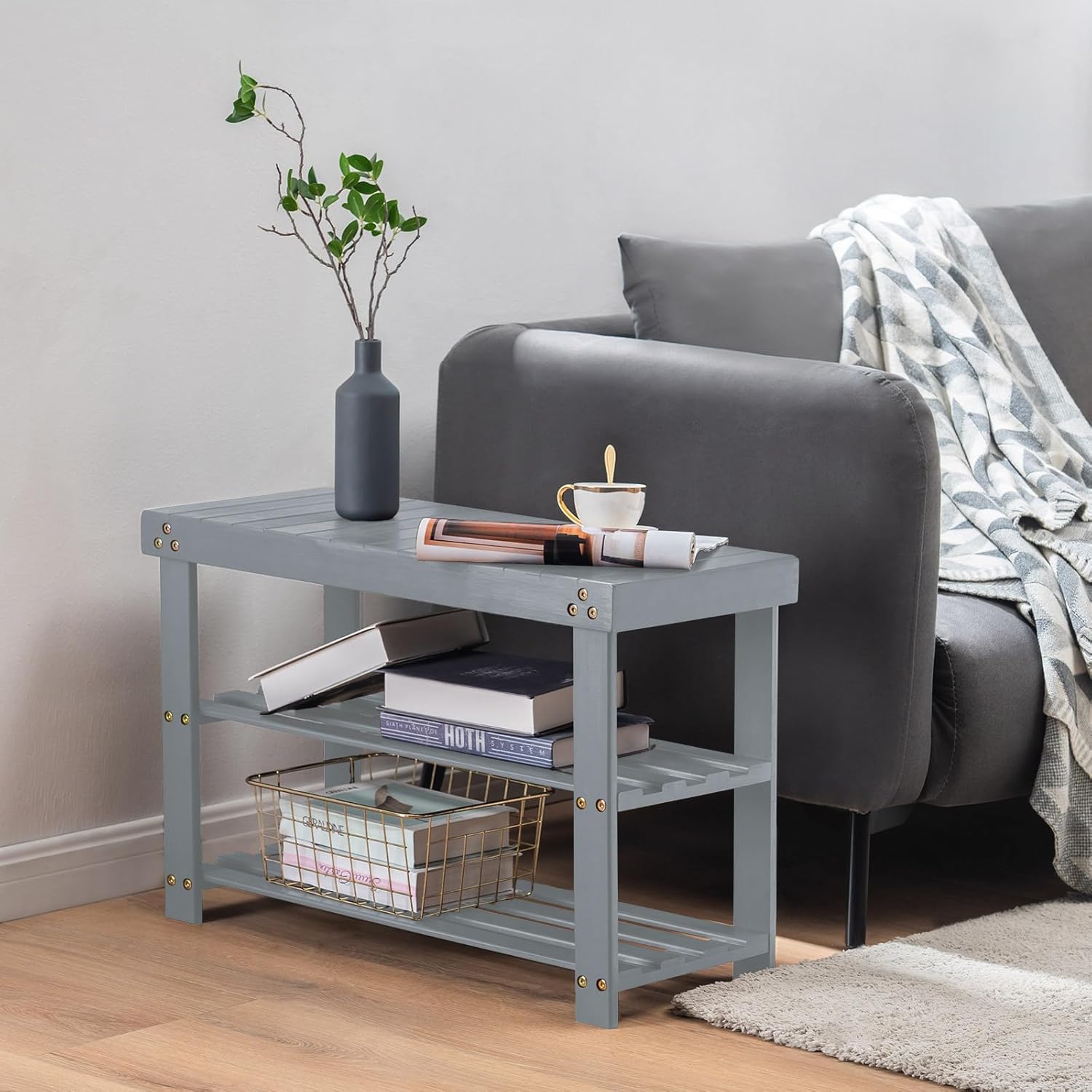 Photos: Apicizon Bamboo Shoe Storage Bench for Living Room, Entryway Storage Premium Shoe Organizer or Entryway Bench, Grey by Apicizon