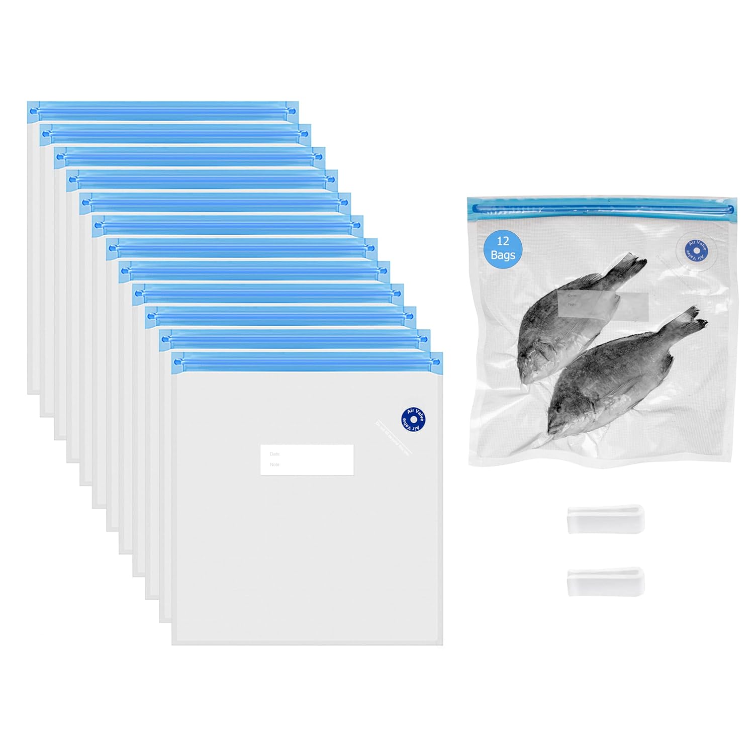 Basicwise 9″ x 13″ Set of 12 Reusable Airtight and Resealable Food Storage Bags Durable & Convenient Solution for Fruits Fresh Vegetables Cooked Meals & Leftovers Compatible… by Basicwise