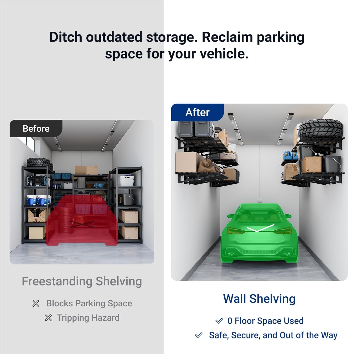 - Maximize Storage Space: This 2×3 feet garage shelving unit provides ample storage space for your garage, small pantry, or kitchen.