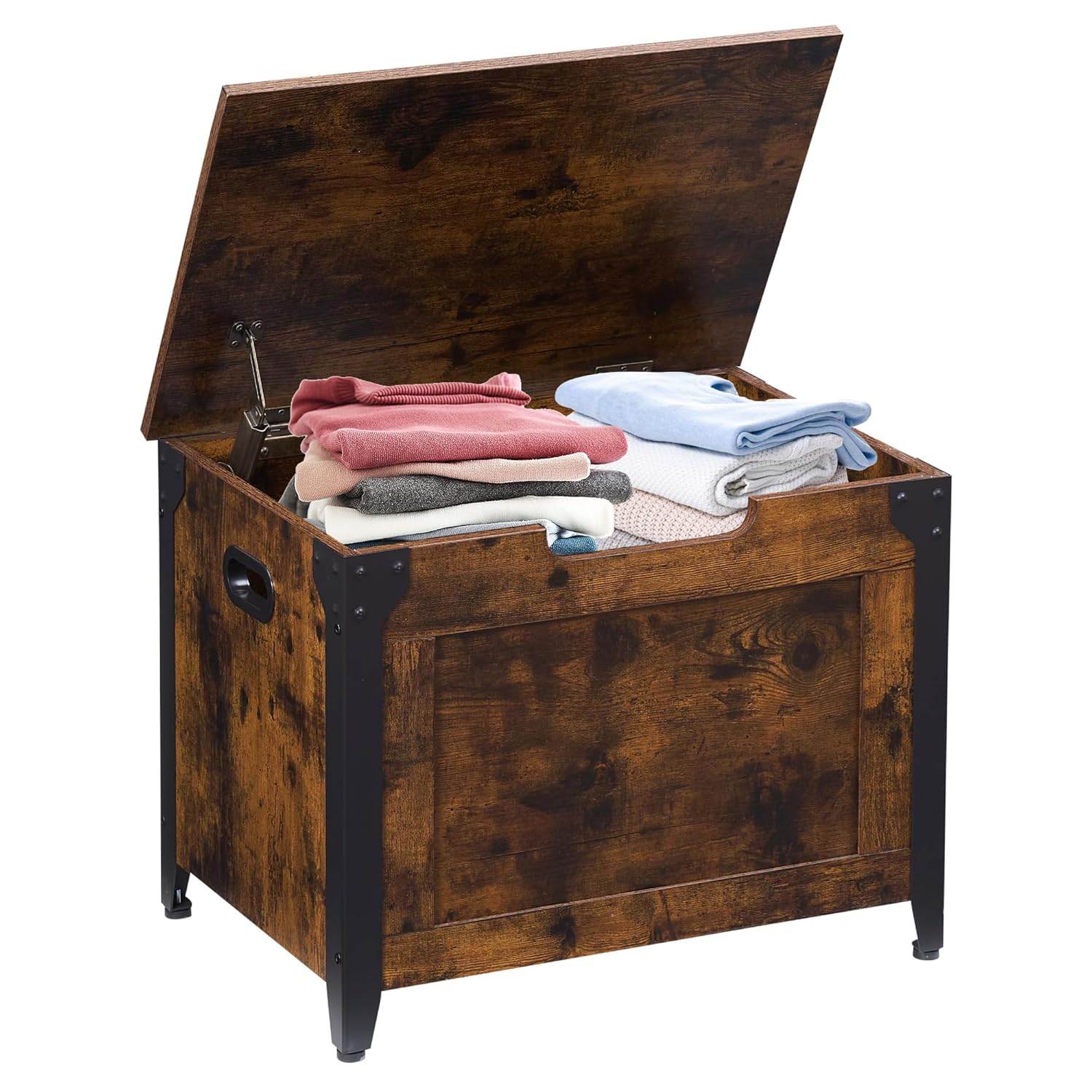 - ใHeavy-Duty ConstructionใCrafted with a reinforced metal frame and premium MDF panels in a minimalist retro design, this storage chest features a 300-lb capacity lift-top lid and a 180-lb rated interior compartmentโengineered for lasting reliability.