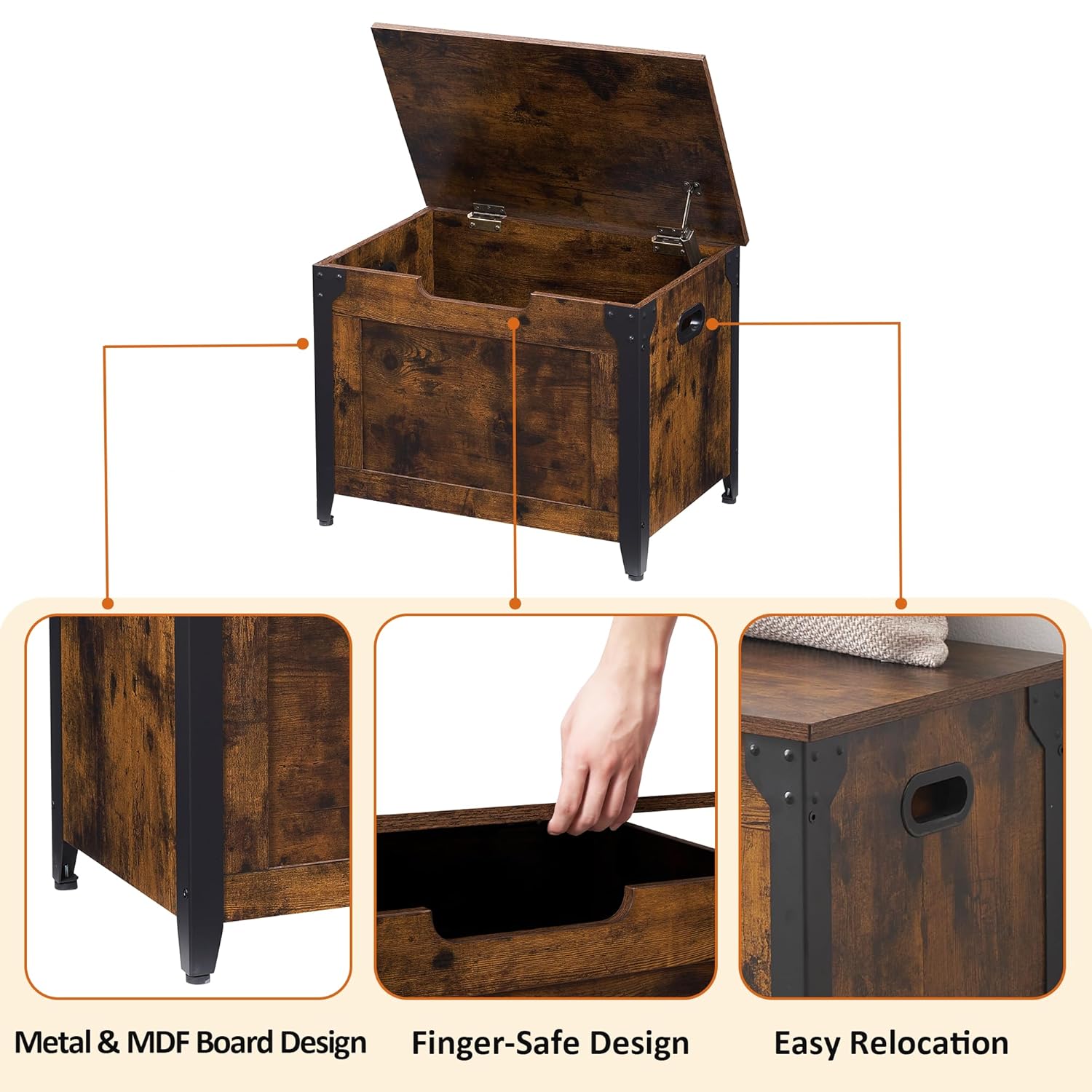 About IDEALHOUSE Storage Bench, 23.6″ Retro Wooden Storage Chest with 2 Safety Hinges, Loads 300 lb, Easy Assembly, Storage Ottoman Bench for Bedroom Entryway Living Room, Rustic Brown