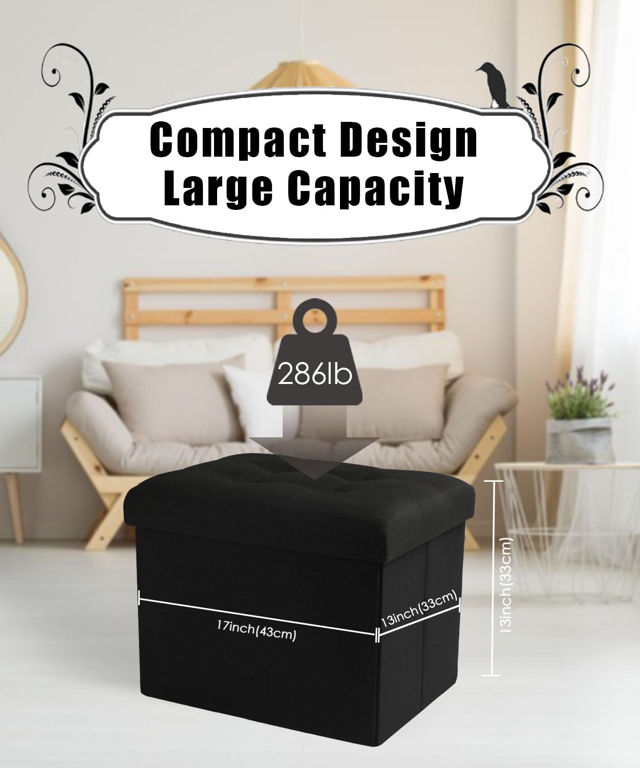 - What you’ll get:L17 X W13 X H13 inches storage ottoman is the perfect size for a cozy footrest, whether it’s used as a padded ottoman or as a storage box, this storage bench is one of the must-have furniture in your home