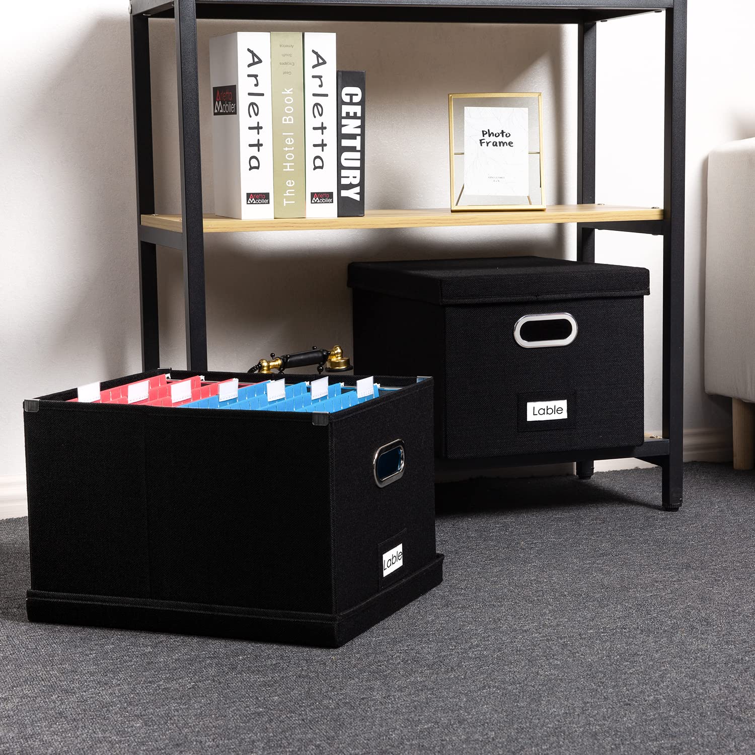 - [DECORATIVE] Say bye bye to boring paper filing boxes! The Prandom file folder box set in black linen provides a stylish way to organize all your papers and supplies; Functional features & a beautiful design create THE ultimate filing organizer