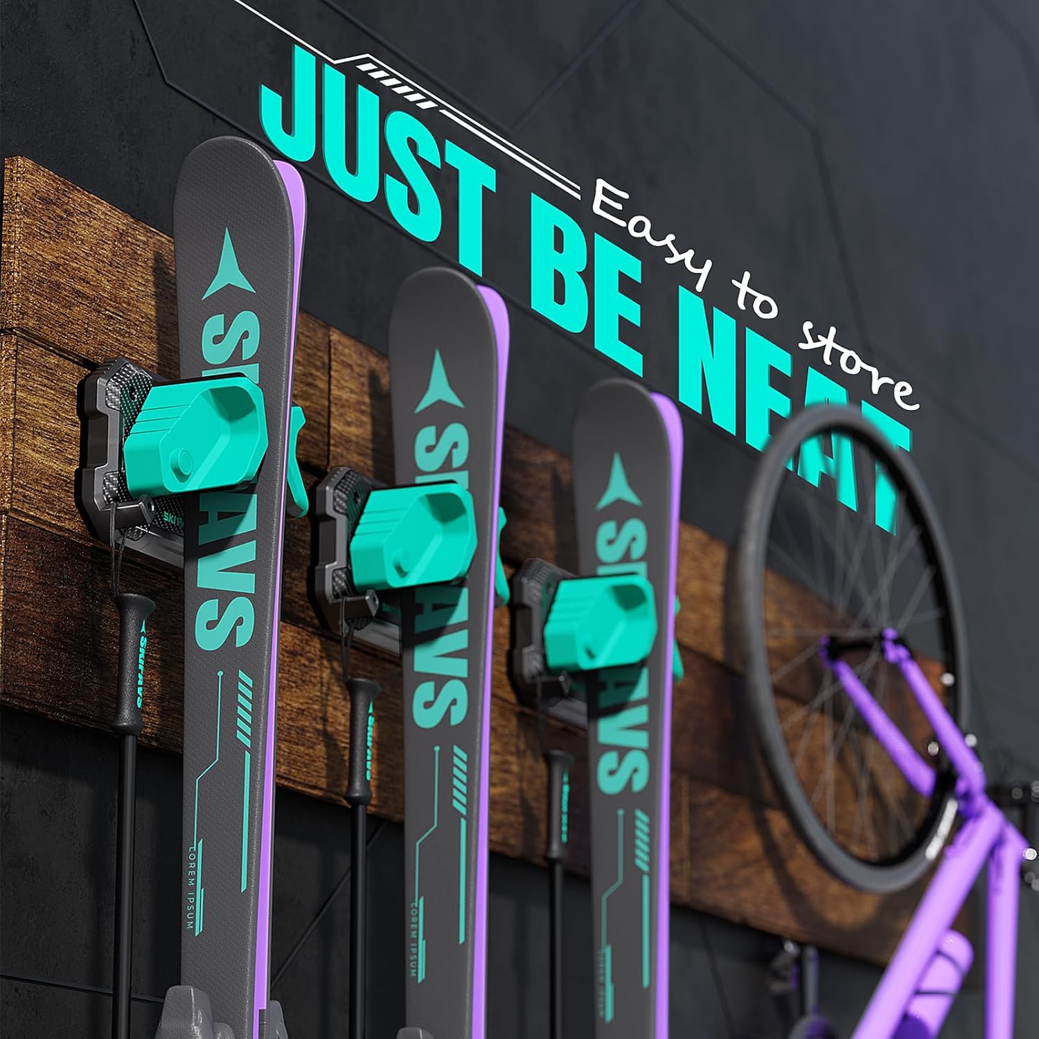 About Ski & Snowboard Wall Rack for Garage Wall Fits Any Ski/board, Ski Wall Mount Holders Damage-Free Storage Rack, Garage Organization Space-Saving Winter Gear Organizer, Green, 1 Pack