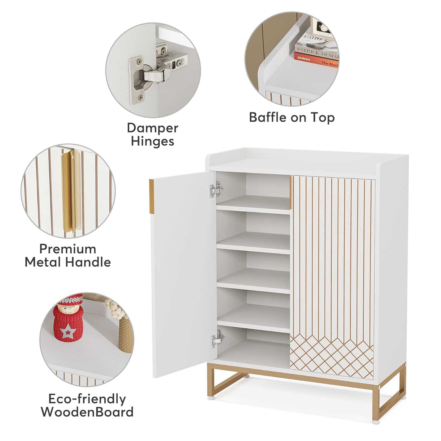 - 【Versatile, Stylish & Elegant】 – This white shoe cabinet features a minimalist design with a classic white finish and clean lines, seamlessly blending into any room while adding visual appeal. Gold strip accents and a diamond pattern finish provide a touch of low-key luxury, making it a versatile choice for modern homes.