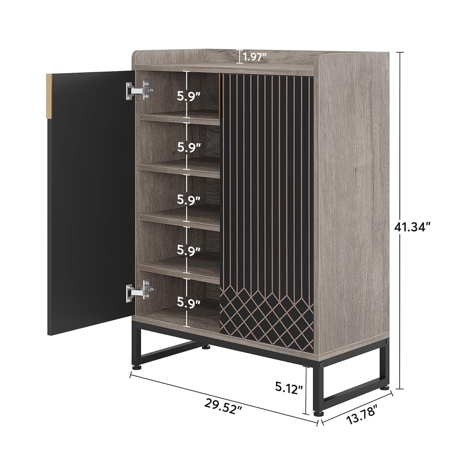 - 🌟【Versatile, Stylish & Elegant】 – This shoe cabinet in pristine shades of grey and black boasts a minimalistic design with clean lines, effortlessly blending into any room and adding visual charm. The striped accents and diamond patterns add a touch of understated luxury, making it an adaptable choice for modern homes.