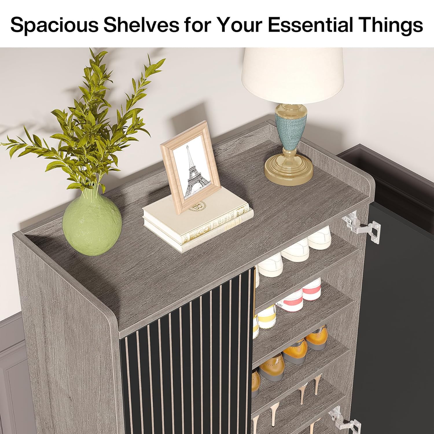 Photos: Tribesigns Shoe Cabinet with Doors, Grey 5 Tiers Shoe Storage Cabinet for Entryway, 25 Pairs Wooden Shoe Rack Cabinet, Modern Shoe Organizer Storage for Living Room, Bedroom,… by Tribesigns