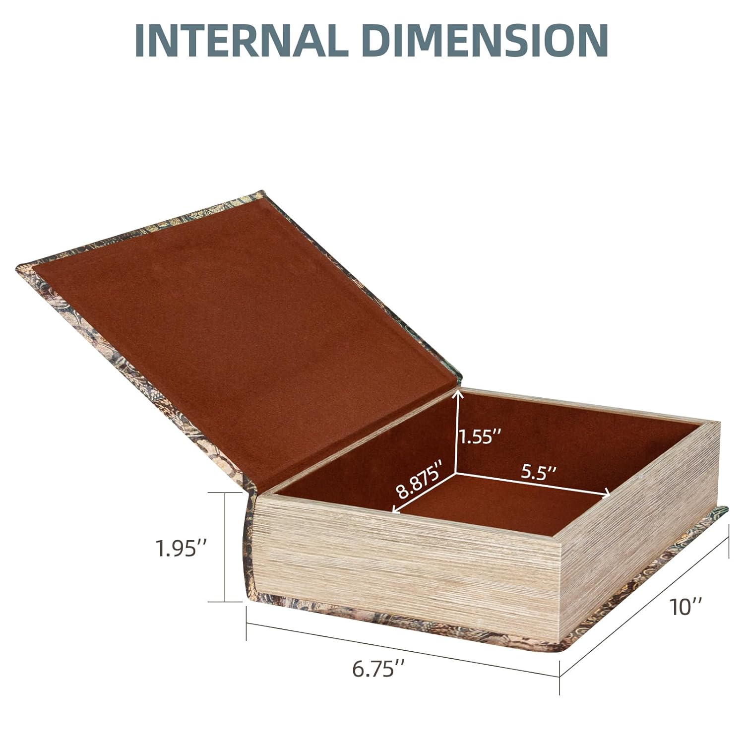 - This decorative book box uses MDF materials with the design of imitation pages. It is a vintage style fake book, which is the perfect bookshelf decoration.Good ideas for Christmas gift