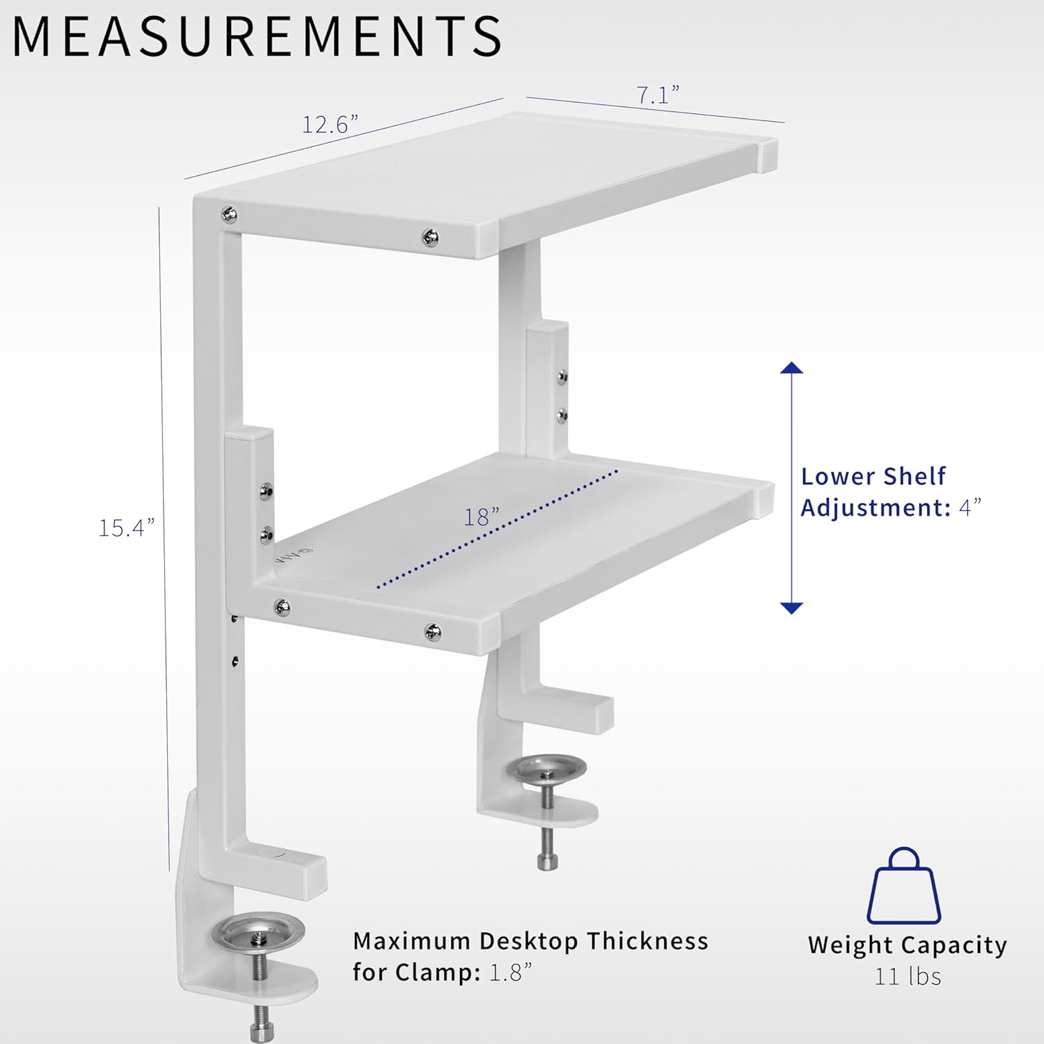 Specification: VIVO Clamp-on 13 inch Above or Below Desk 2-Tier Shelving Unit for Table Accessories, Gaming Devices, and More, Storage Tray, Desktop Organizer, White, STAND-SHELF2CW by VIVO